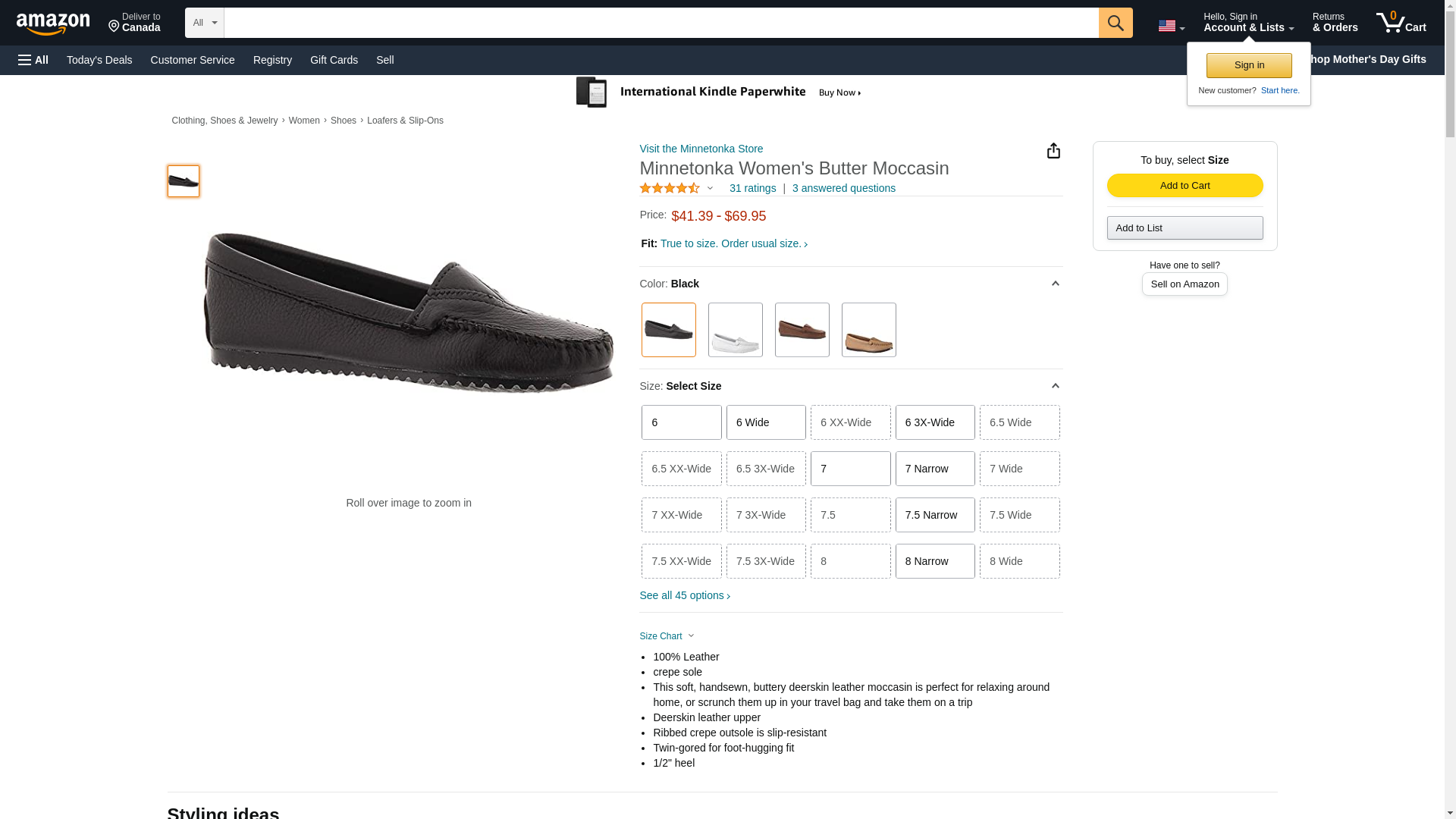 Minnetonka Women's Butter Moccasin 7.5 E US Black
