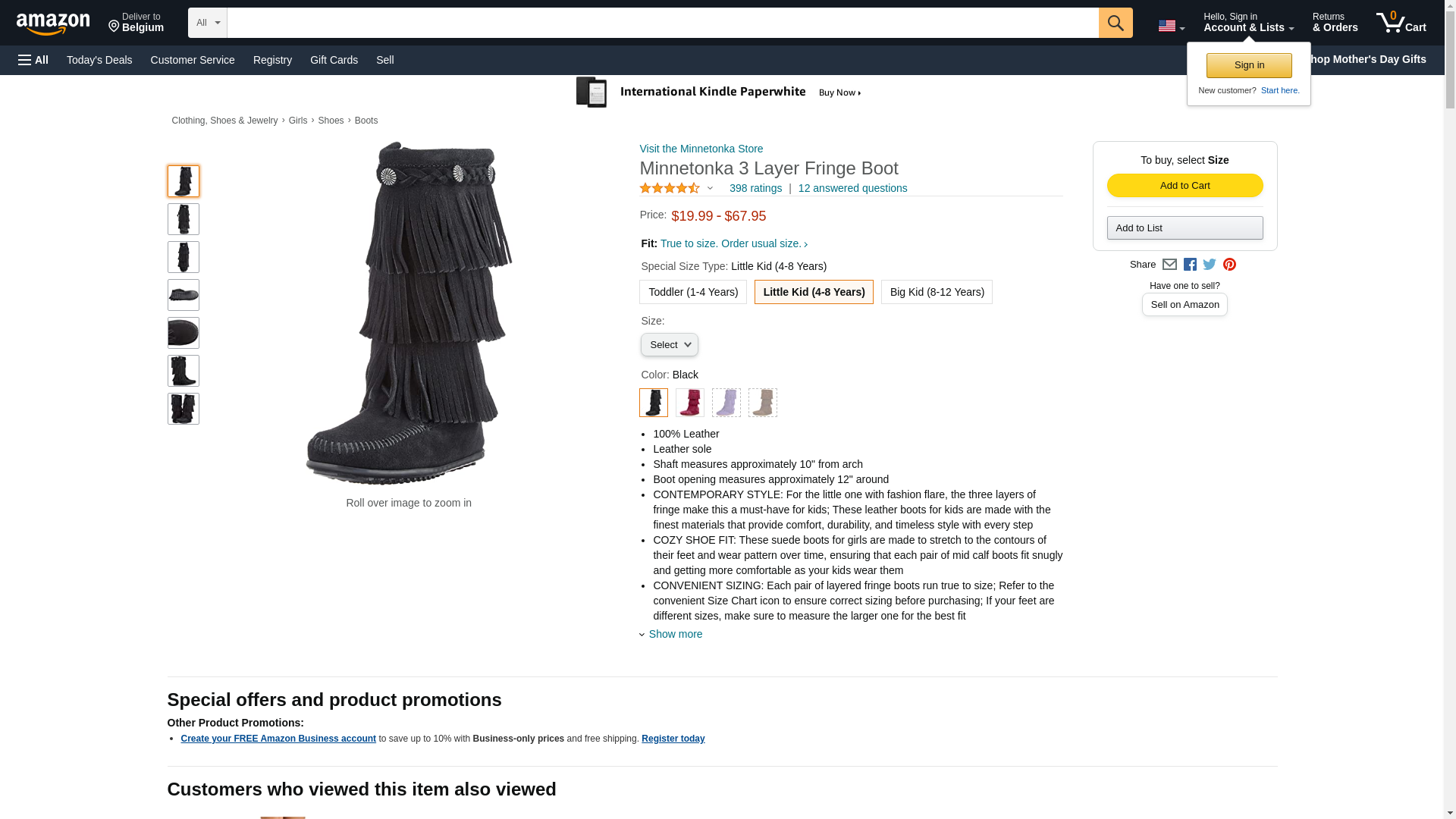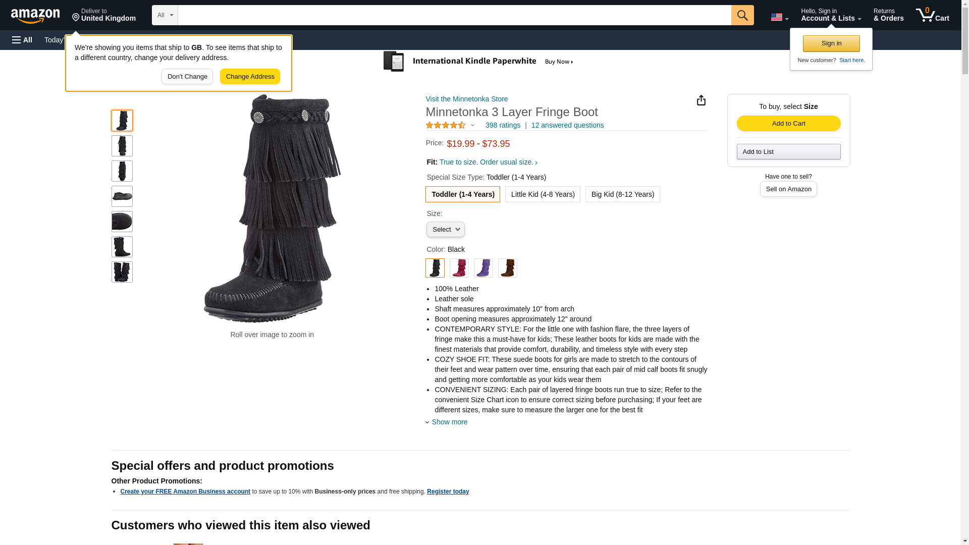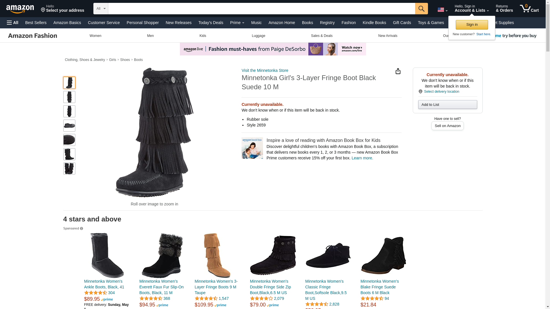 "Minnetonka Girl's 3-Layer Fringe Boot Black Suede 10 M"