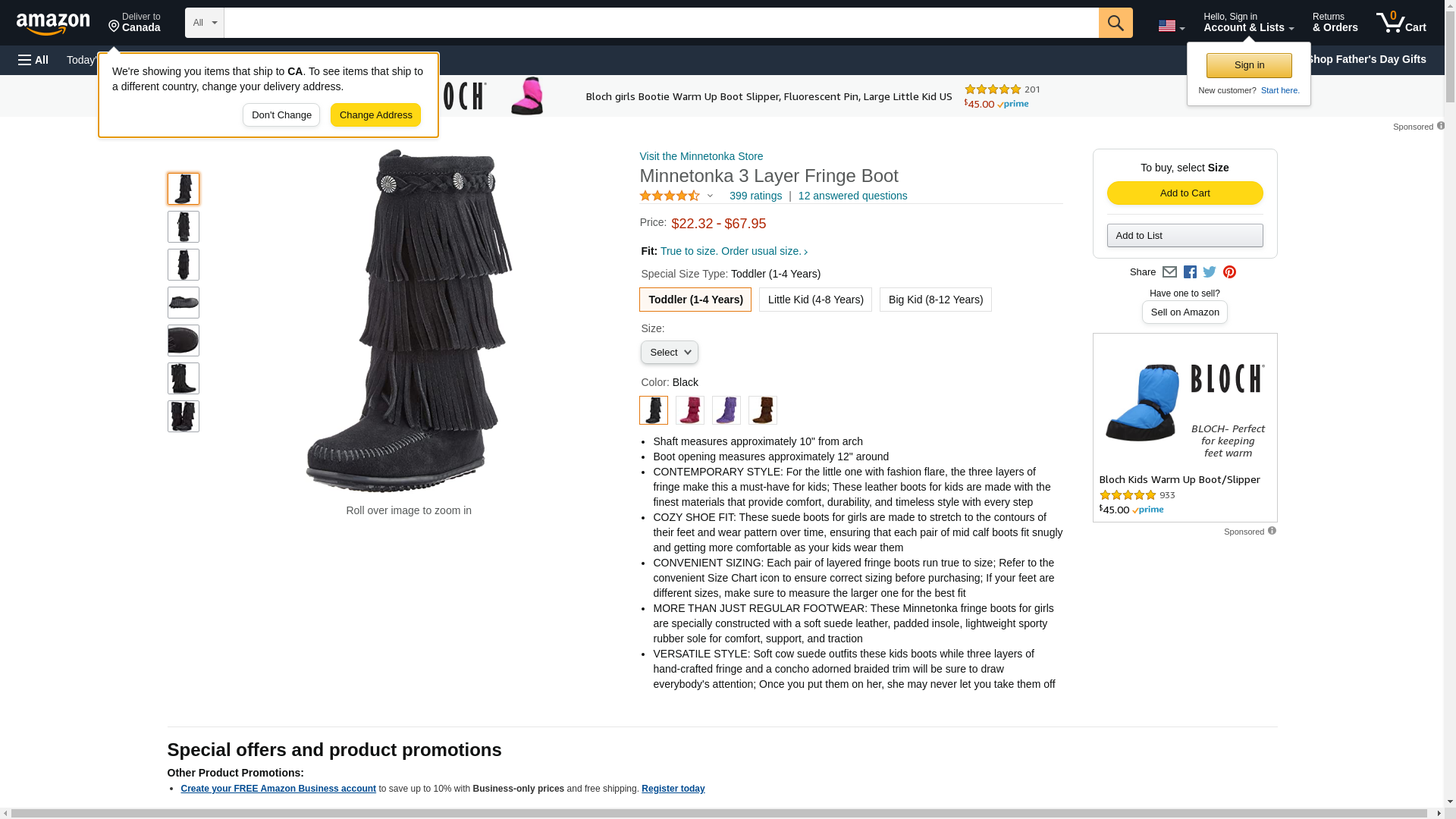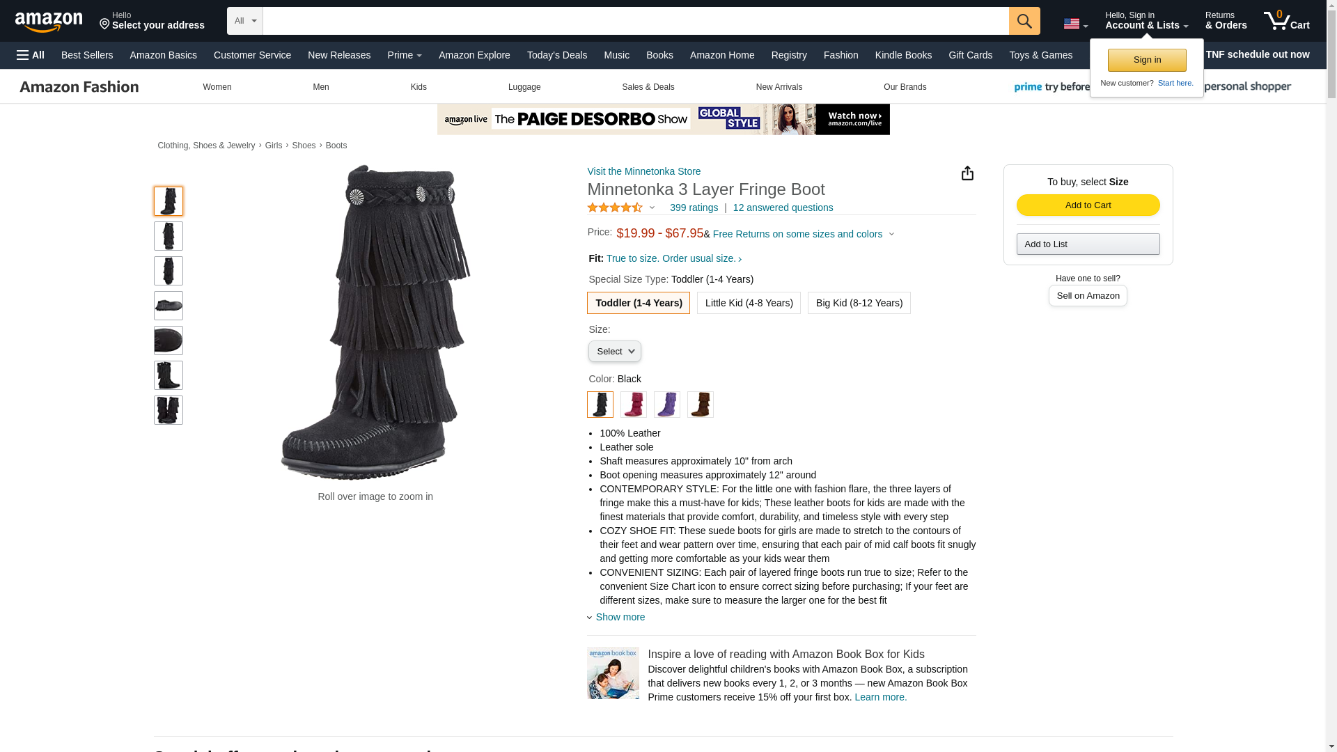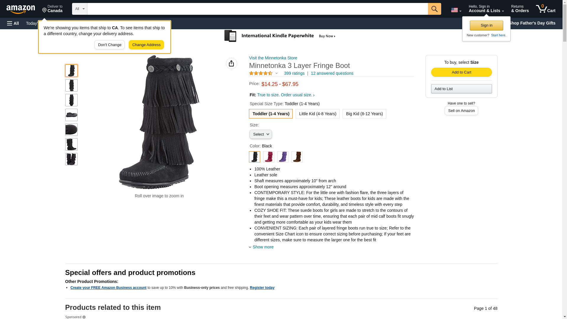 "Minnetonka Girl's 3-Layer Fringe Boot Black Suede 10 M"
