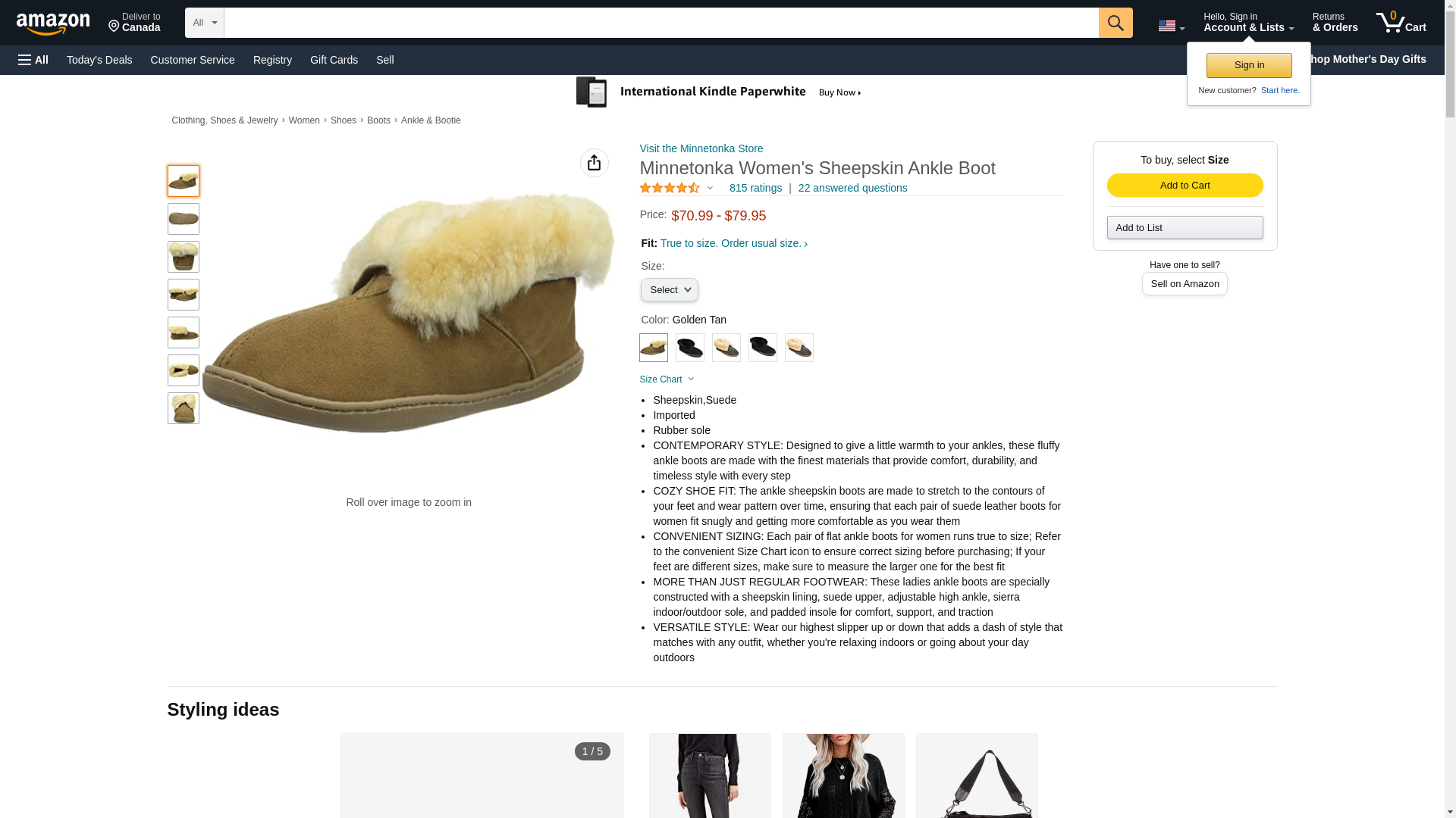 Minnetonka Women's Sheepskin Ankle Boot 6 M Golden Tan