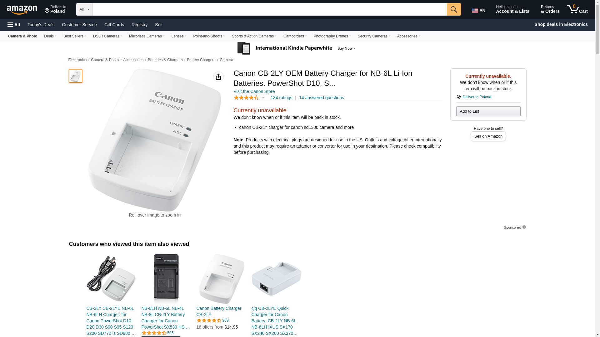 Canon CB-2LY Charger for NB-6L NB-6LH Li-ion Battery Canon PowerShot D10 D20 S90 S95 S120 SD770 IS SD980 IS SD1200 IS SD1300 IS SD3500 IS SD4000 IS and many more (See description)