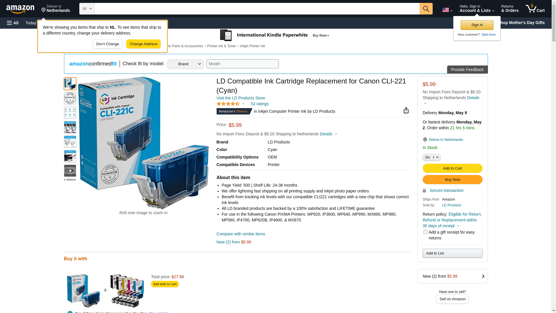 LD Compatible Ink Cartridge Replacement for Canon CLI-221 (Cyan)