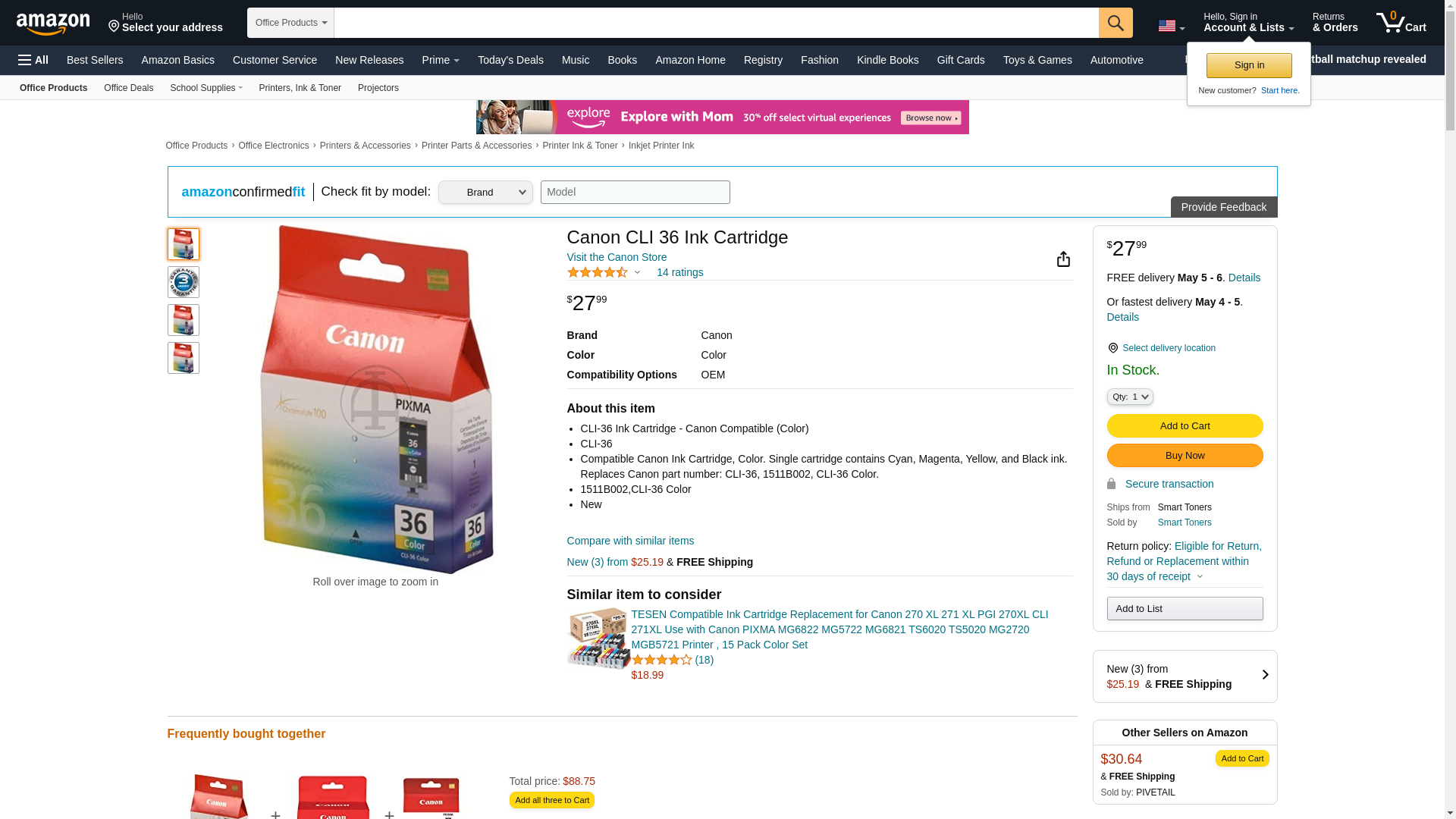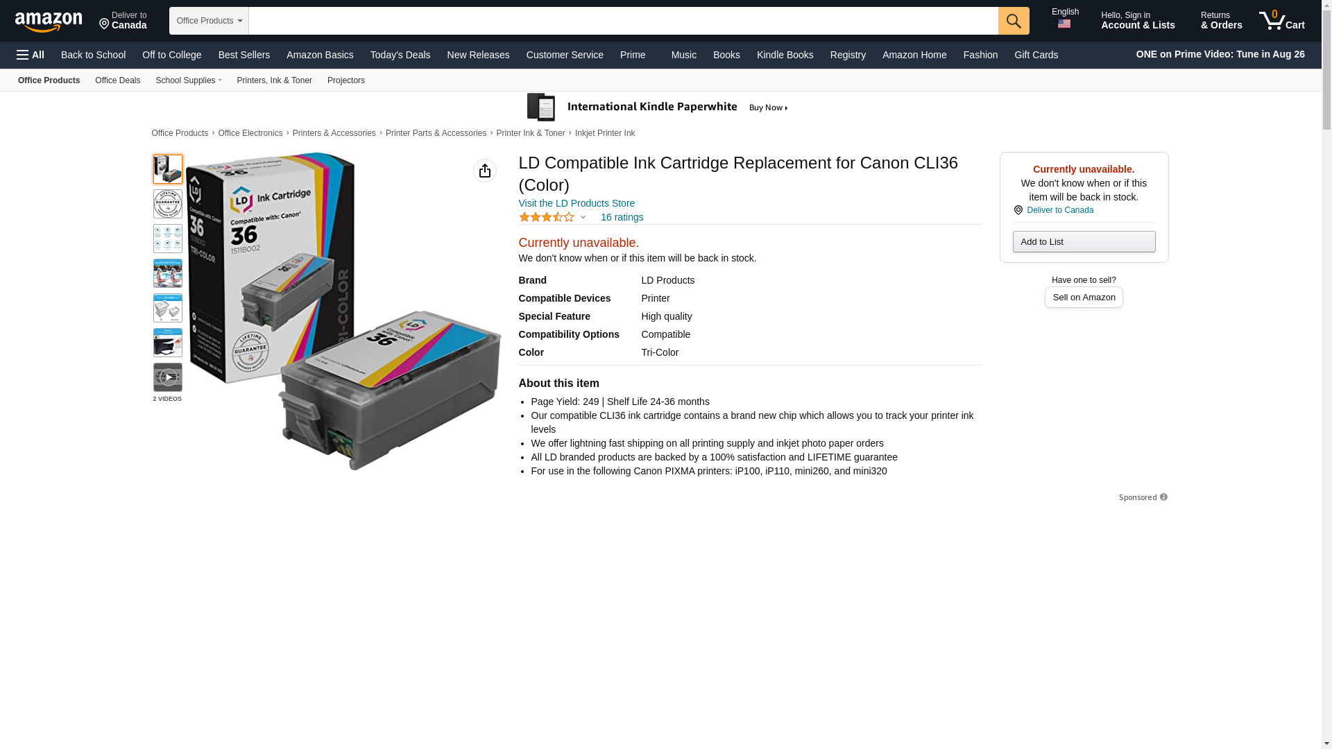 | Feature | CANON CLI36 CLI36 (CLI-36) Ink Tank, 100 Page-Yield, Tri-Color |