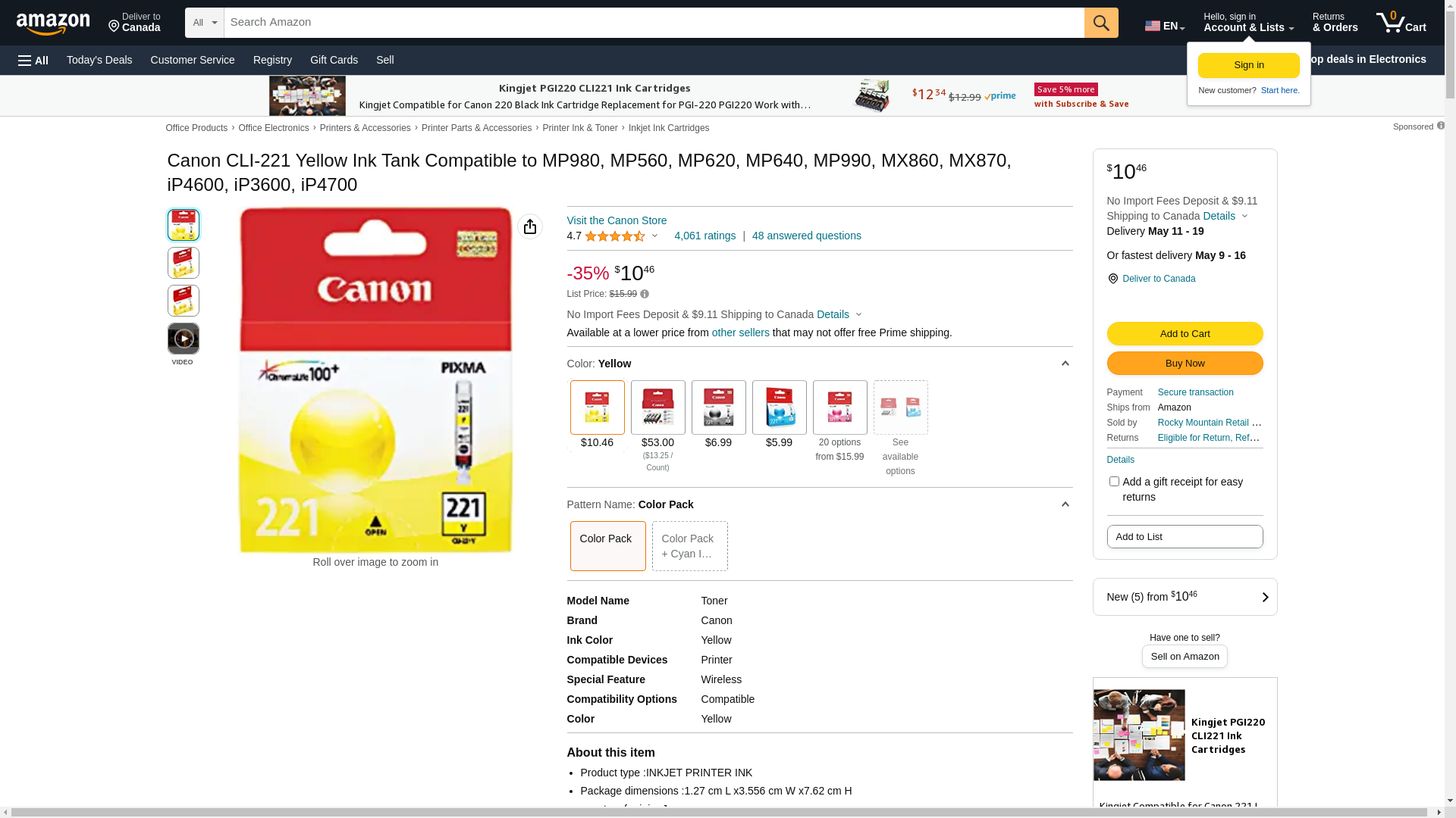 | Manufacturer | Canon Ink |