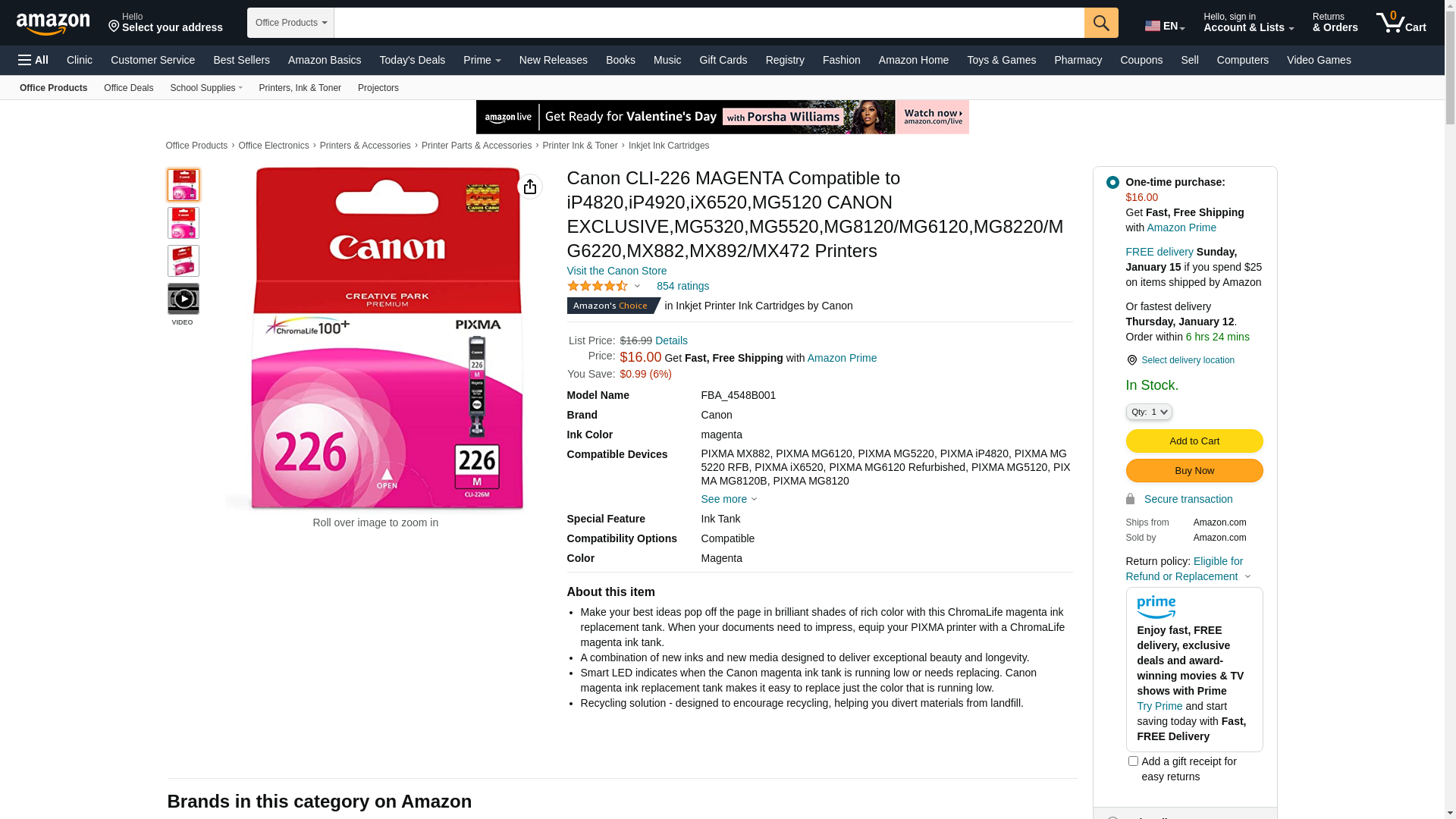 Canon CLI226MA Ink Cartridge, Magenta - in Retail Packaging