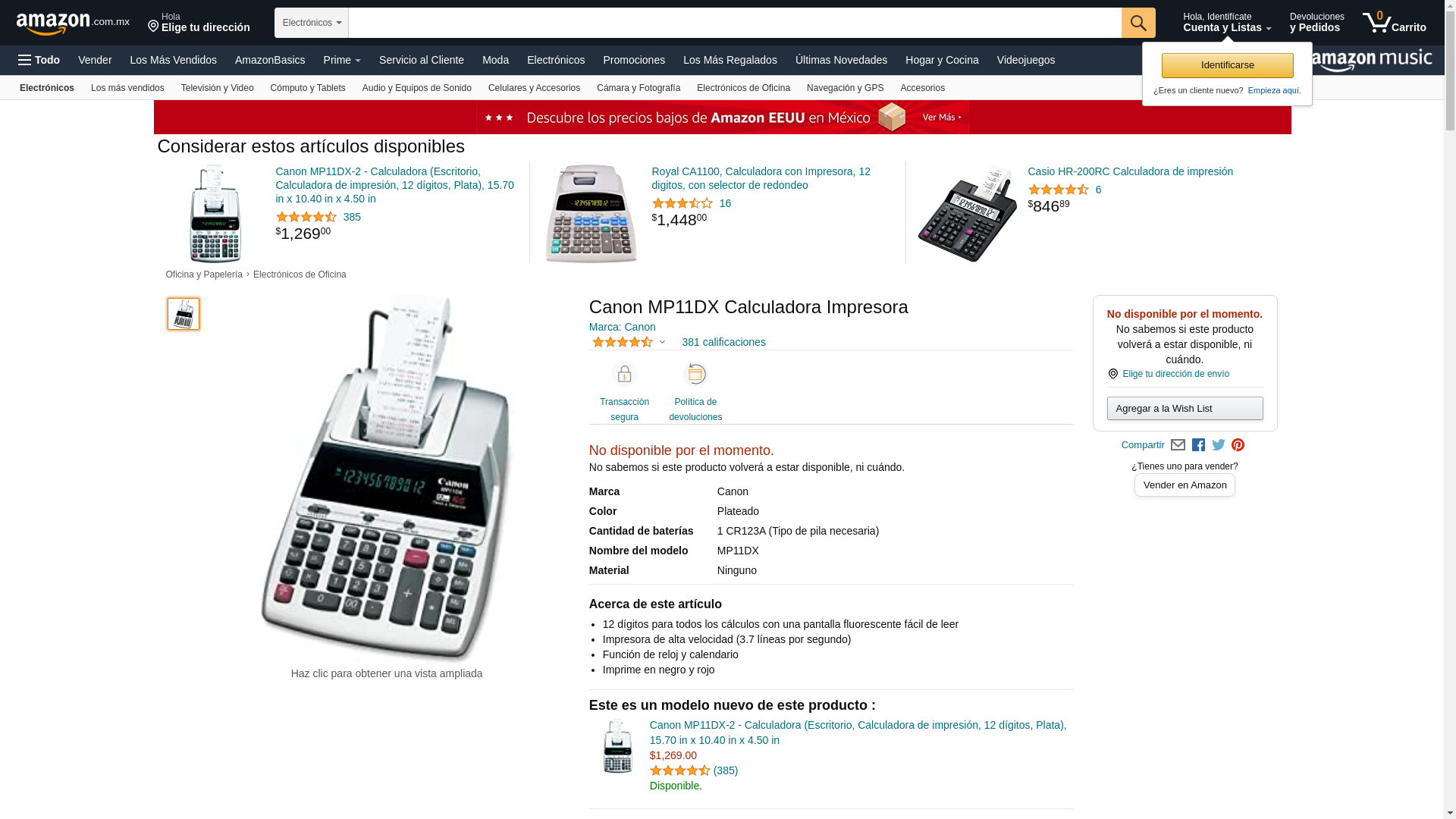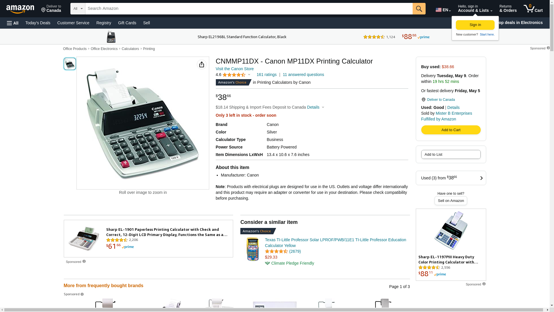 Canon MP11DX Printing Calculator. Large, 12-digit, fluorescent display; prints 3.7 LPS in 2 colors (black + / red -)....