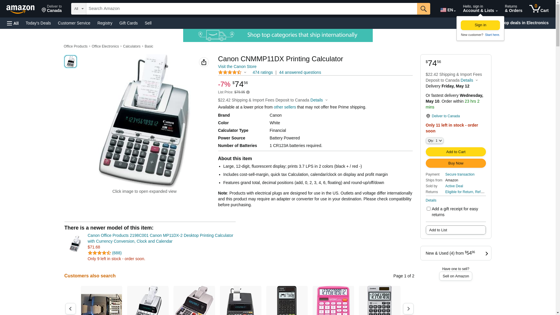 CNMMP11DX - Canon MP11DX Printing Calculator