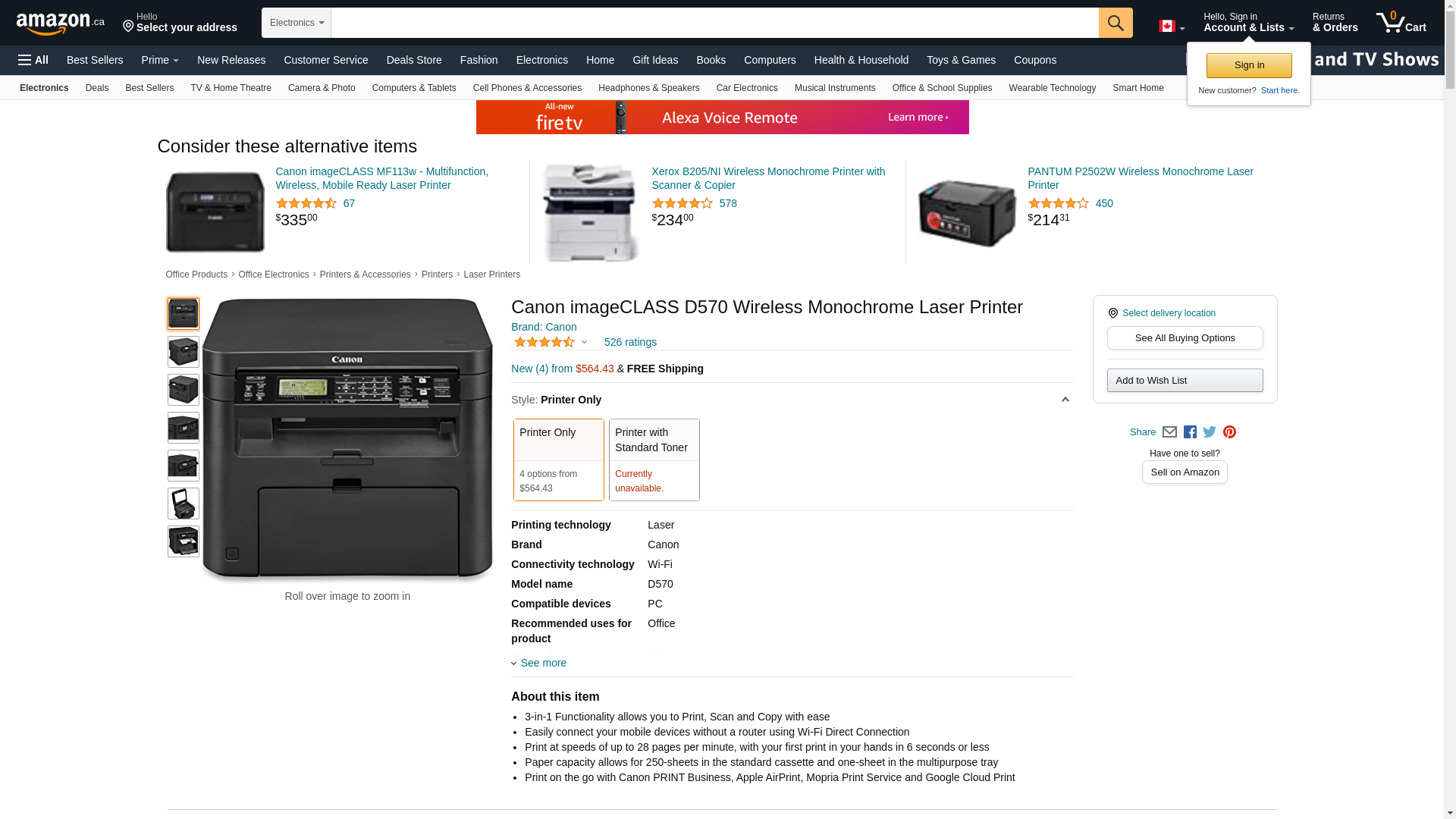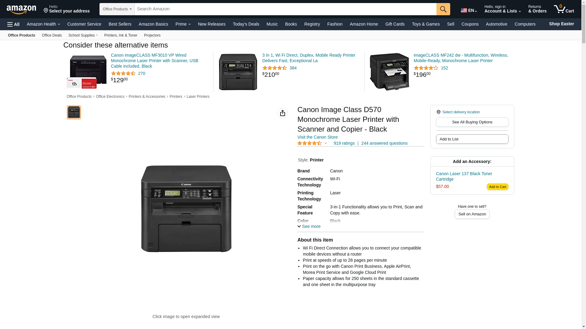 Canon Image Class D570 Monochrome Laser Printer with Scanner and Copier - Black