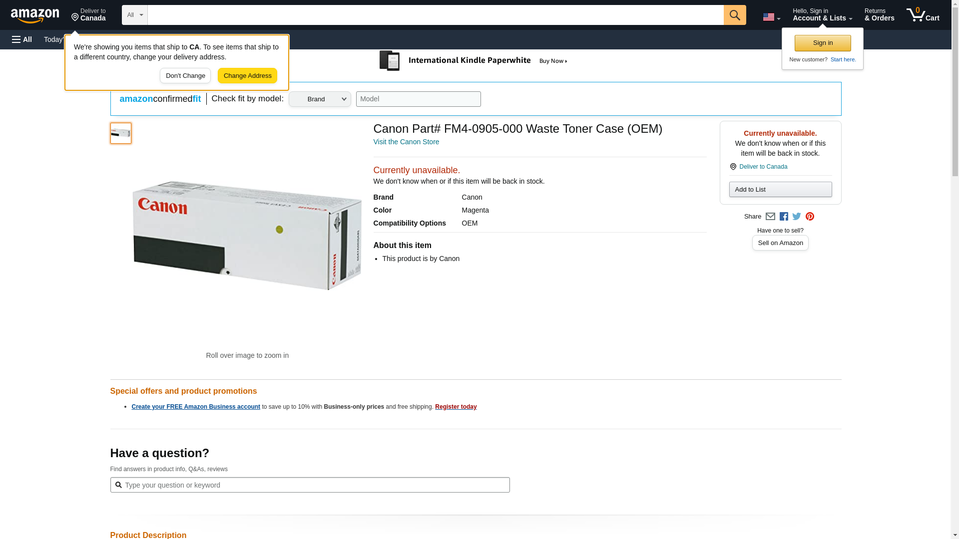 Canon FM4-0905-000 OEM Waste Toner Case , manufactured by Canon This photo magenta ink cartridge has a liquid volume of 130mL.