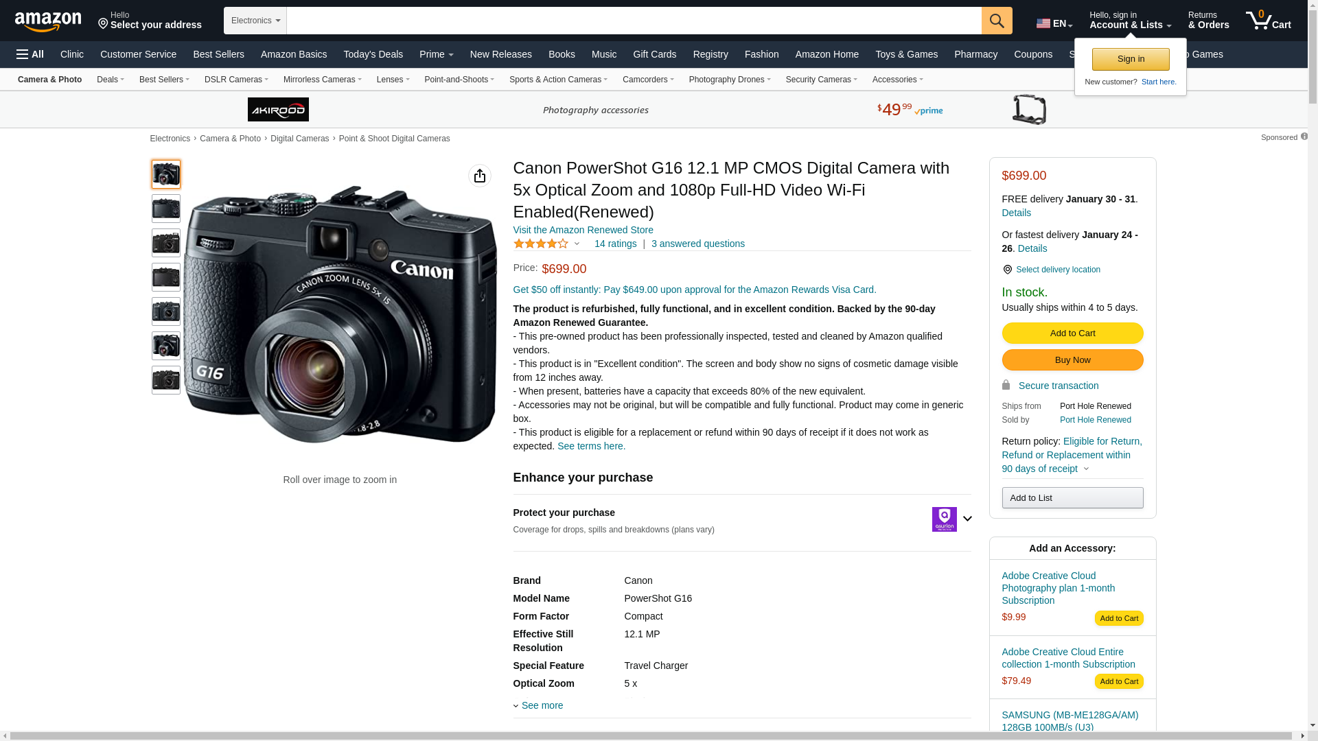 | Part number | PowerShot G16 |