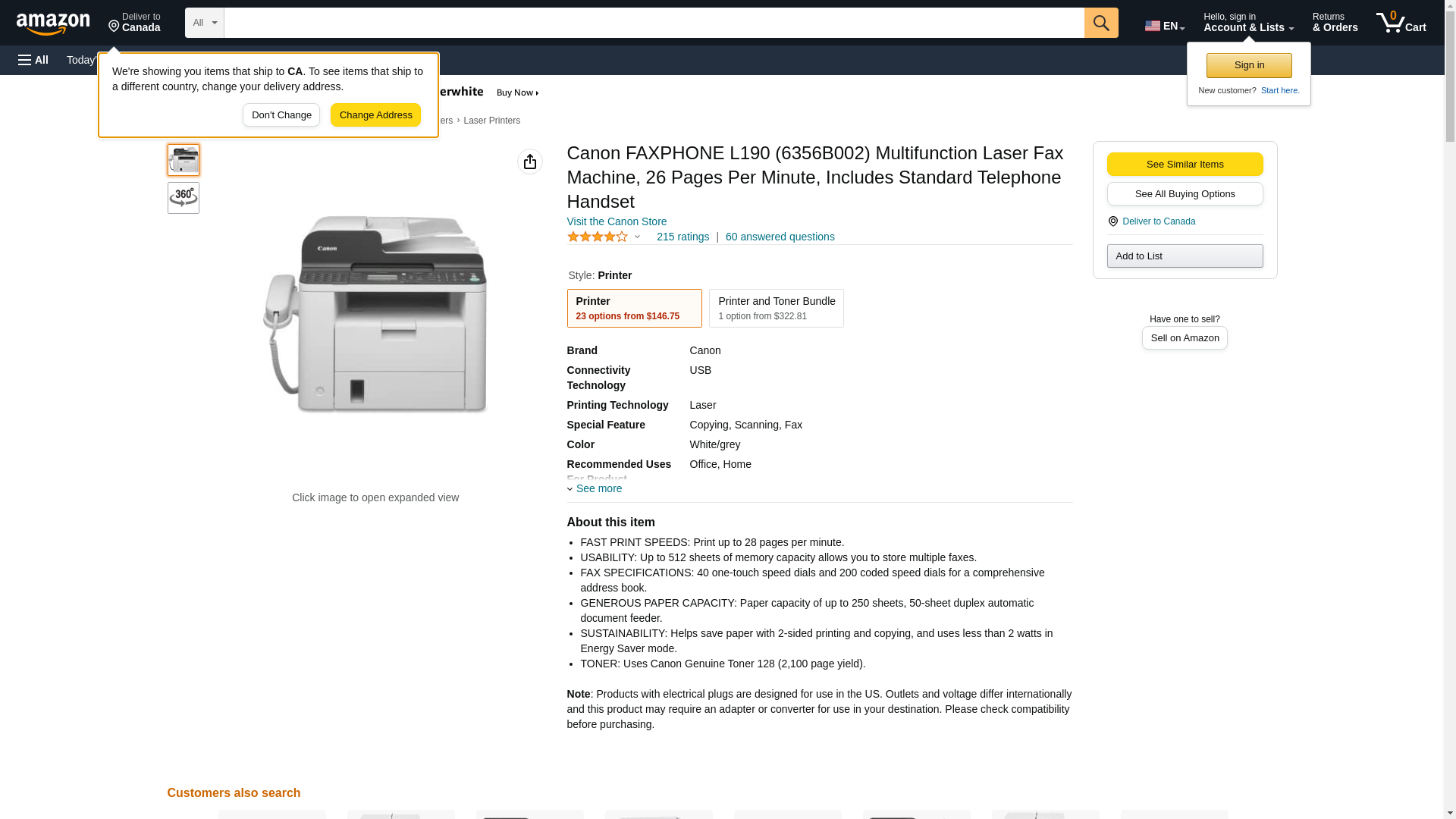 Canon Lasers FAXPHONE L190 Wireless Monochrome Printer with Copier and Fax