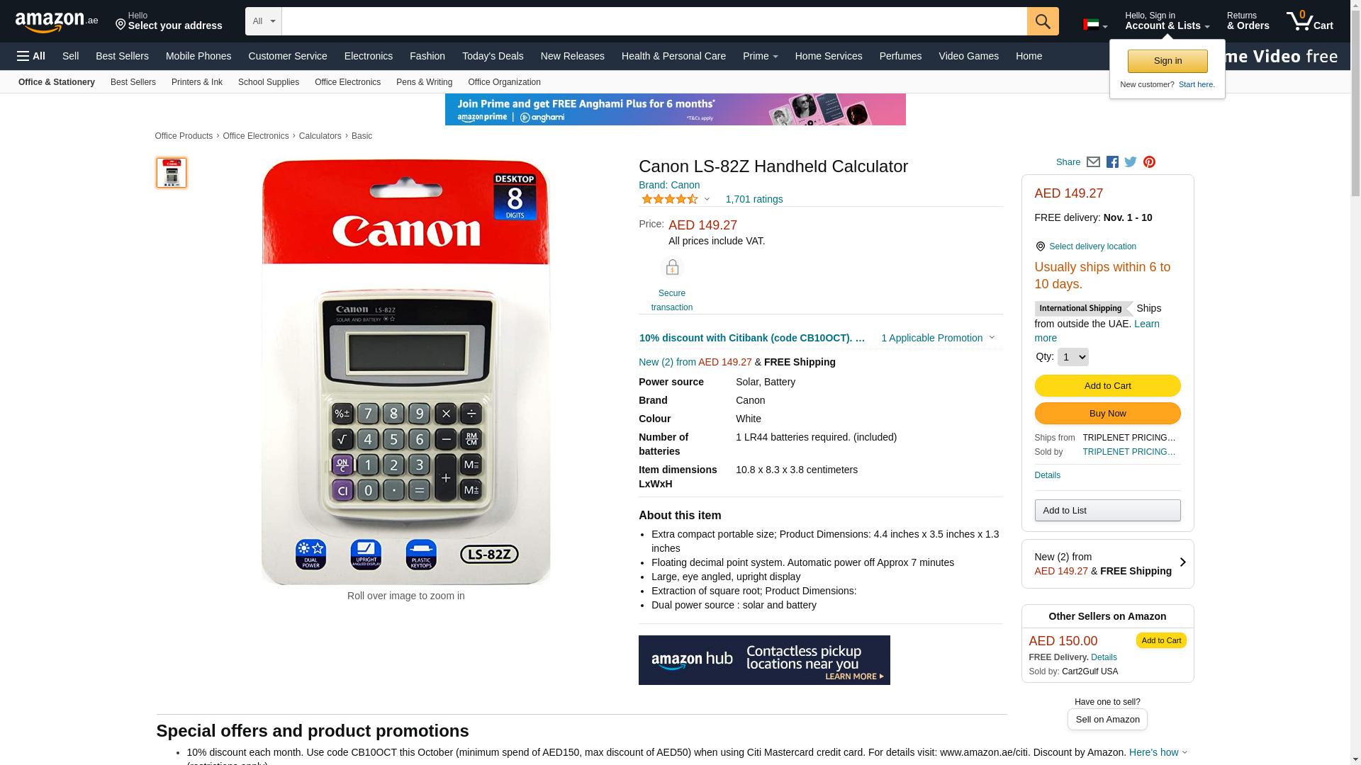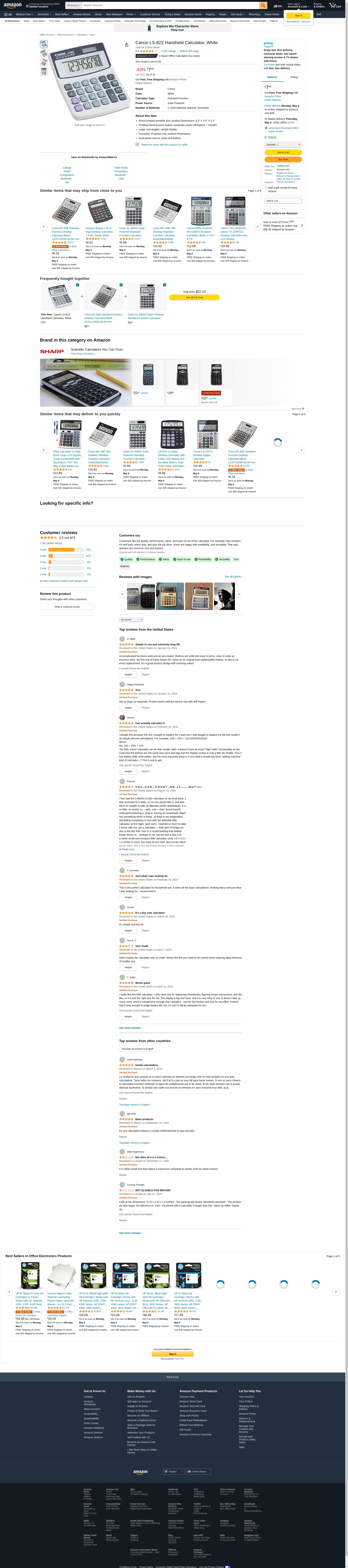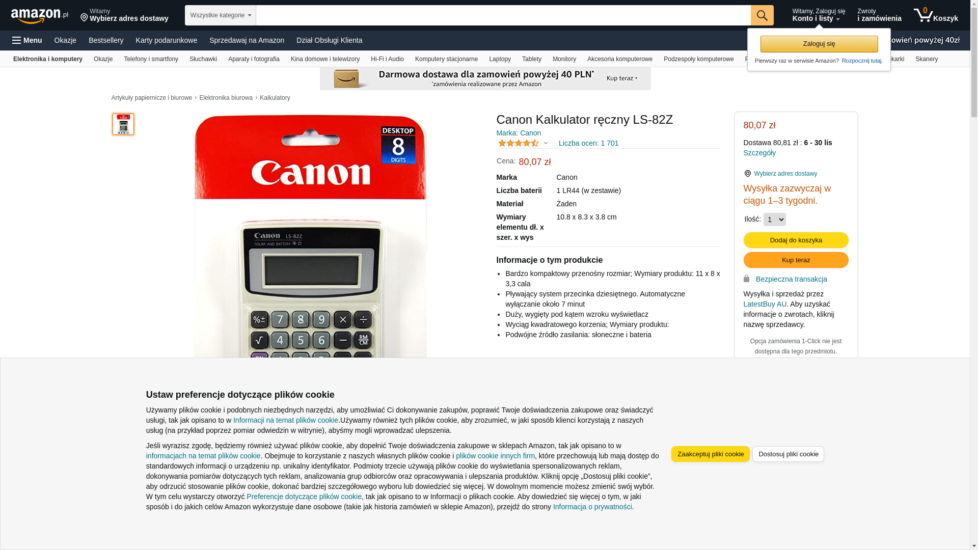 Product Description Thanks to a host of useful features, the LS 82Z is one of the most user friendly calculators around. The upright LCD helps prevent overhead glare and eye strain, while the display makes numbers appear clear and crisp even in the dimmest lighting. Both solar and battery power ensure that you'll always finish whatever you start, whenever and wherever you are so you don't miss a step. Amazon.com Canon's compact LS82Z calculator provides a range of functions for quick calculations and easy figuring of finances. It's an ideal tool for home, office, and school, providing all the basics of calculation: addition, subtraction, multiplication, division, constant multiplication, division and percentage calculations, percentage add-on, and discount calculations. The extra-large LCD display is angled to improve desktop viewing and to reduce glare and eyestrain; the numbers look crisp even in low light. Special function keys and a comfortable keyboard design, with large bold colors, also increase your speed and accuracy. The LS82Z measures approximately 3.5 by 4.5 by 2.25 inches and features an automatic power selection that shifts between solar and battery power as needed.