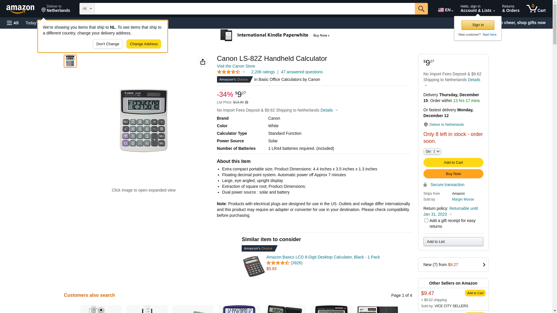 Canon Ls82z 8-Digit Calculator,Lrg LCD,Dual Power,3-1/2-Inch X4-3/8-Inch X1/4-Inch
