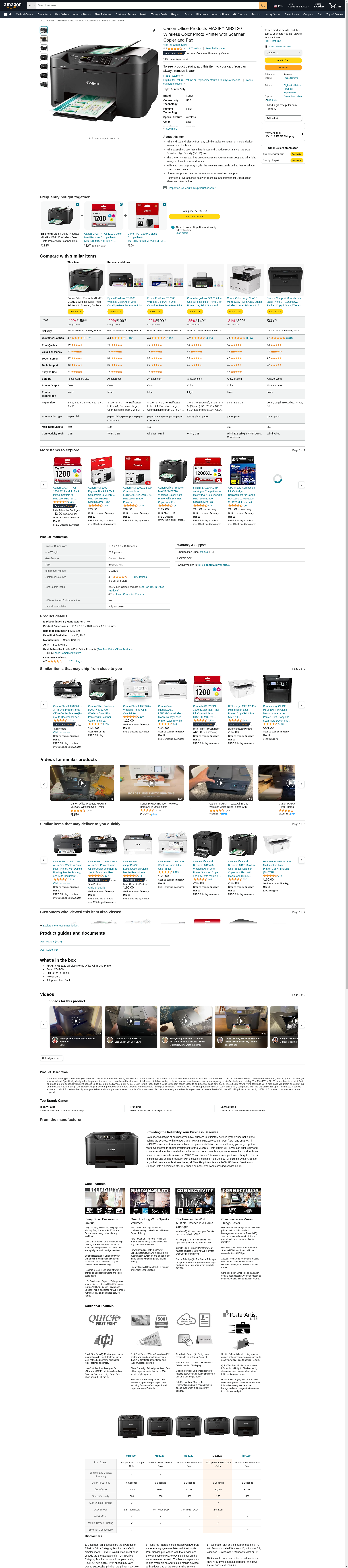 Canon Office Products MAXIFY MB2120 Wireless Color Photo Printer with Scanner, Copier and Fax