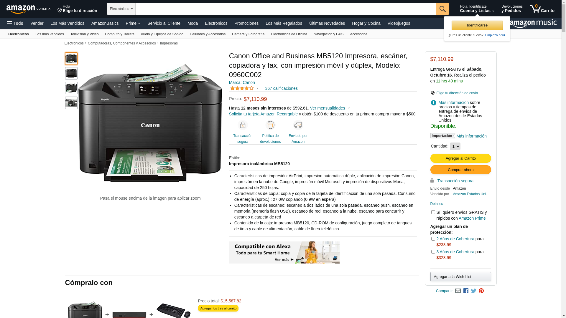 Canon Office and Business MB5120 All-in-One Printer, Scanner, Copier and Fax, with Mobile and Duplex Printing