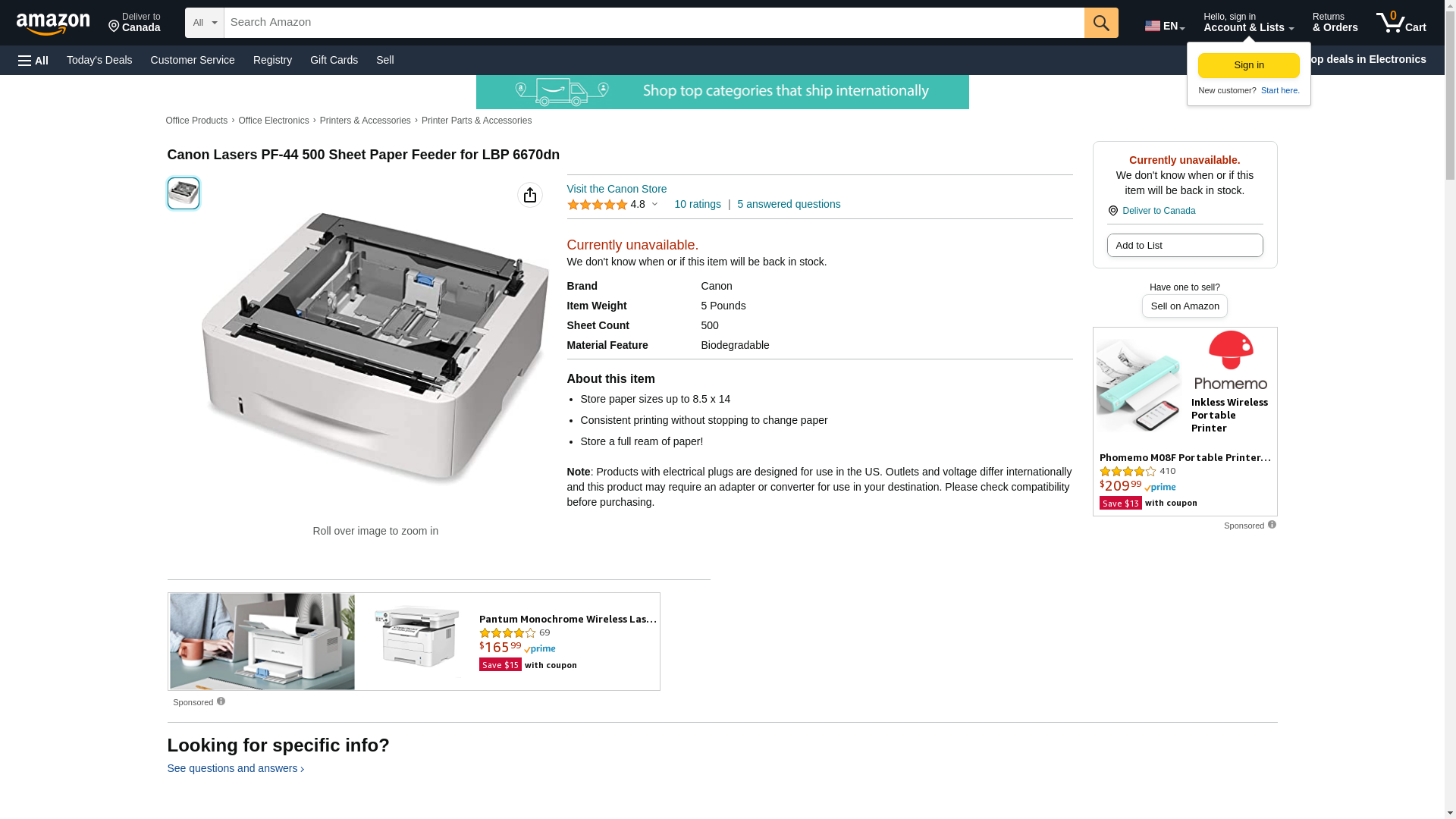 Canon Lasers PF-44 500 Sheet Paper Feeder for LBP 6670dn
