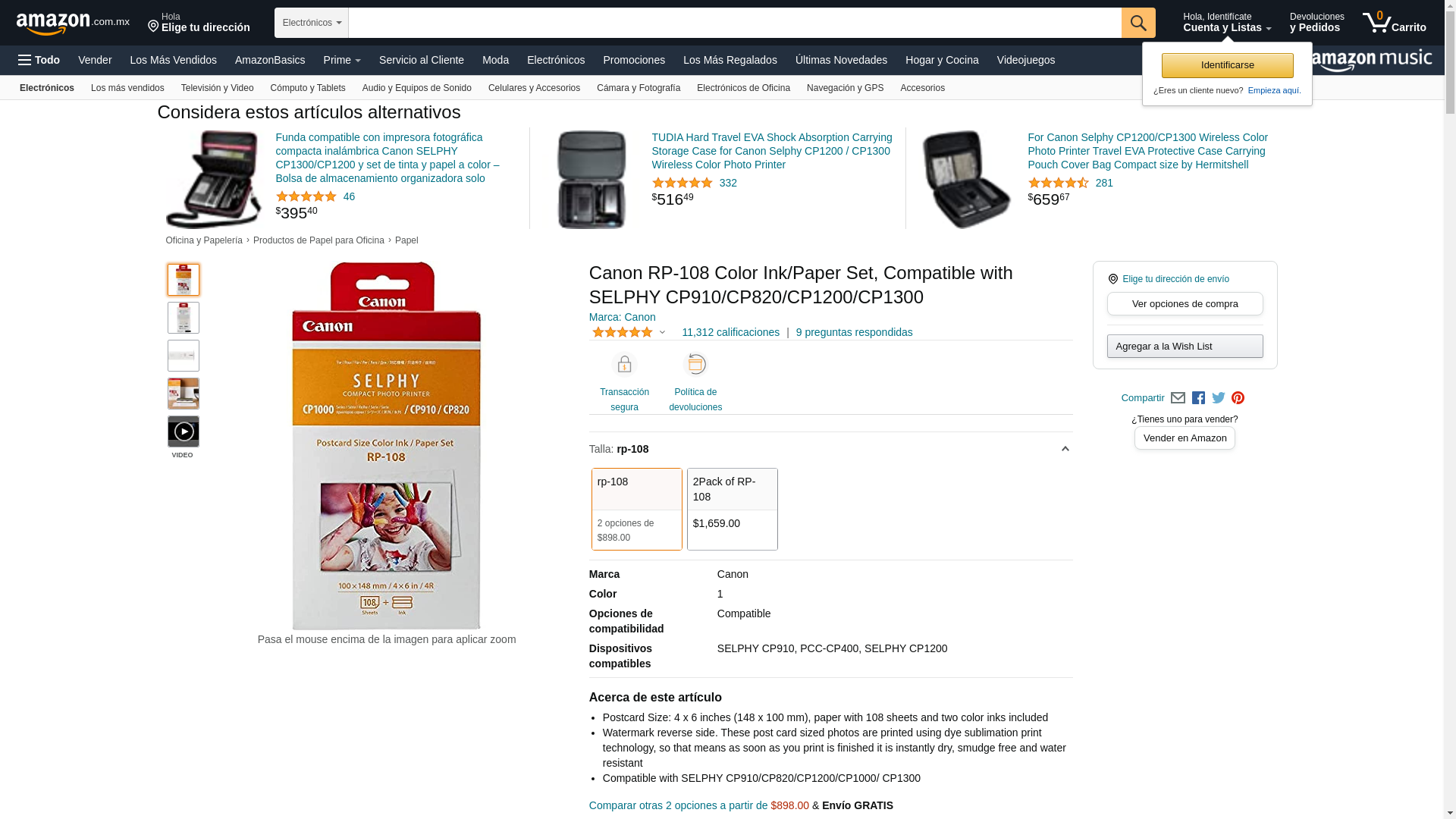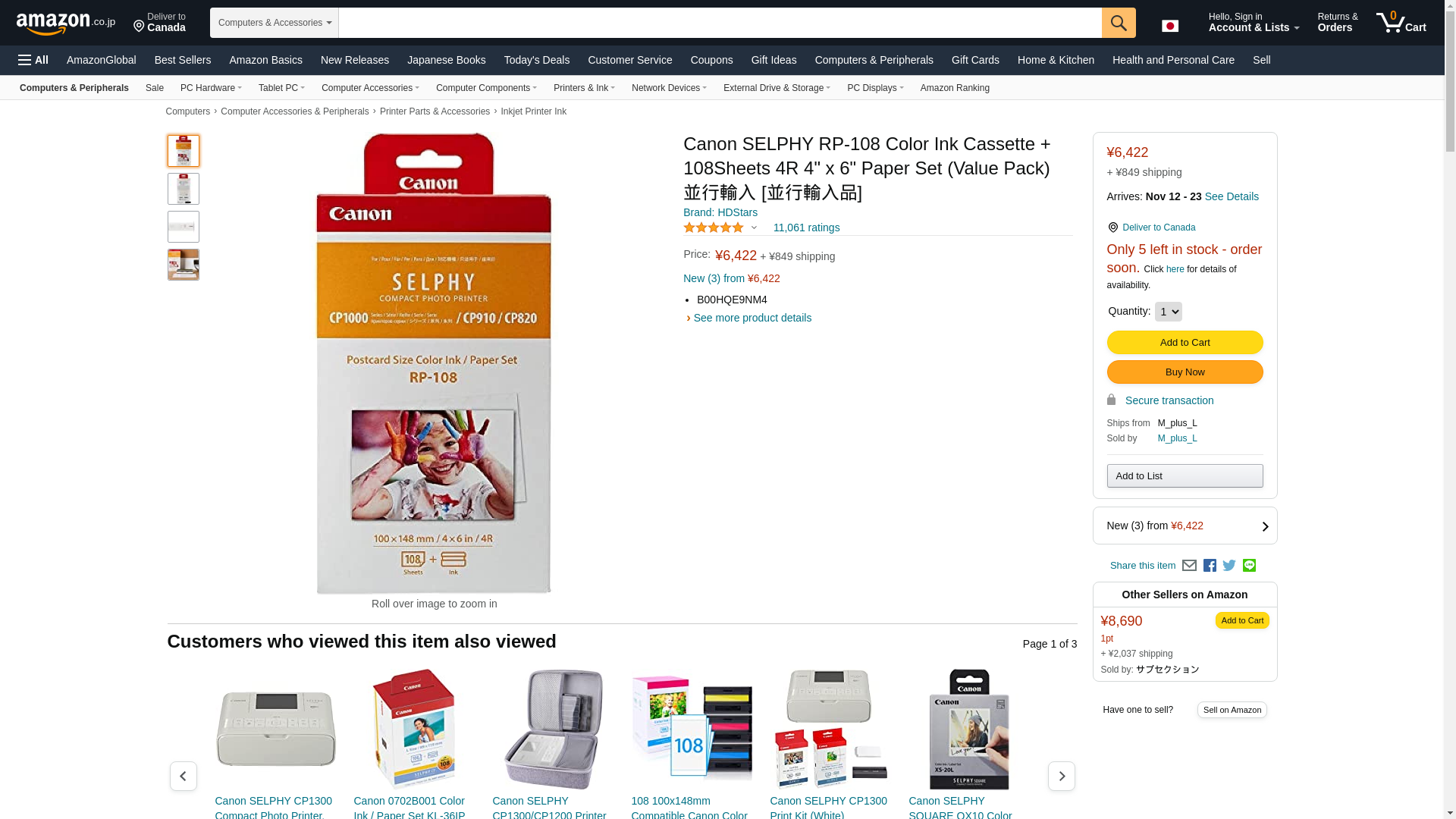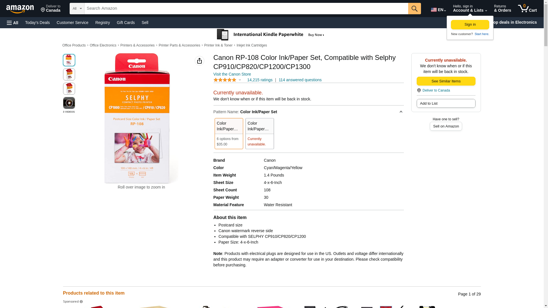 Canon RP-108 Color Ink/Paper Set, Compatible with Selphy CP910/CP820/CP1200/CP1300