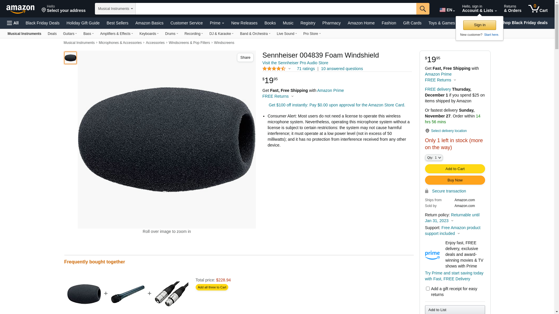 Sennheiser 004839 Foam Windshield