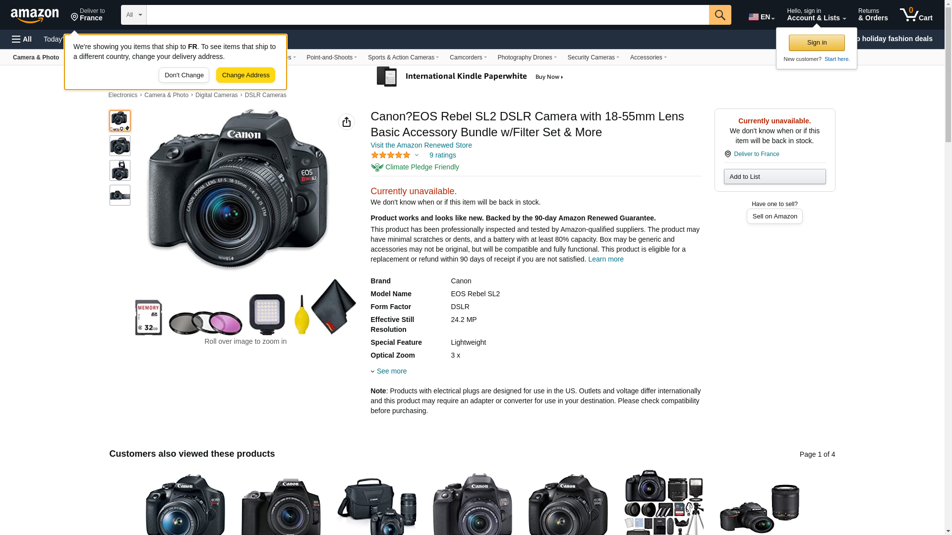 - Canon EOS Rebel SL2 DSLR Camera - 24.2MP APS-C CMOS Sensor - DIGIC 7 Image Processor - 3" 1.04m-Dot Vari-Angle Touchscreen LCD - Full HD 1080p Video Recording at 60 fps - 9-Point AF System; Dual Pixel CMOS AF - Native ISO 25600, Extended to ISO 51200 - Up to 5 fps Continuous Shooting - Feature Assistant; Microphone Input - Built-In Wi-Fi with NFC and Bluetooth