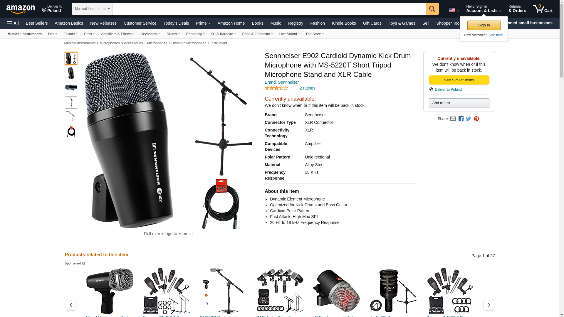 Sennheiser E902 Professional Cardiod Dynamic Microphone with Stand (Repack) The cardioid polar pattern e902 is a dynamic instrument microphone especially designed for deep bass frequencies such as kick drums, bass guitar amps, and tuba. Powerful Defined Highly Dynamic Rich in Detail Easy to Use Full Manufactures Warranty What is a New Factory repack? Full warranty Included. Original Packaging (unless otherwise stated). Item is in great condition! Only used Demo Purposes.