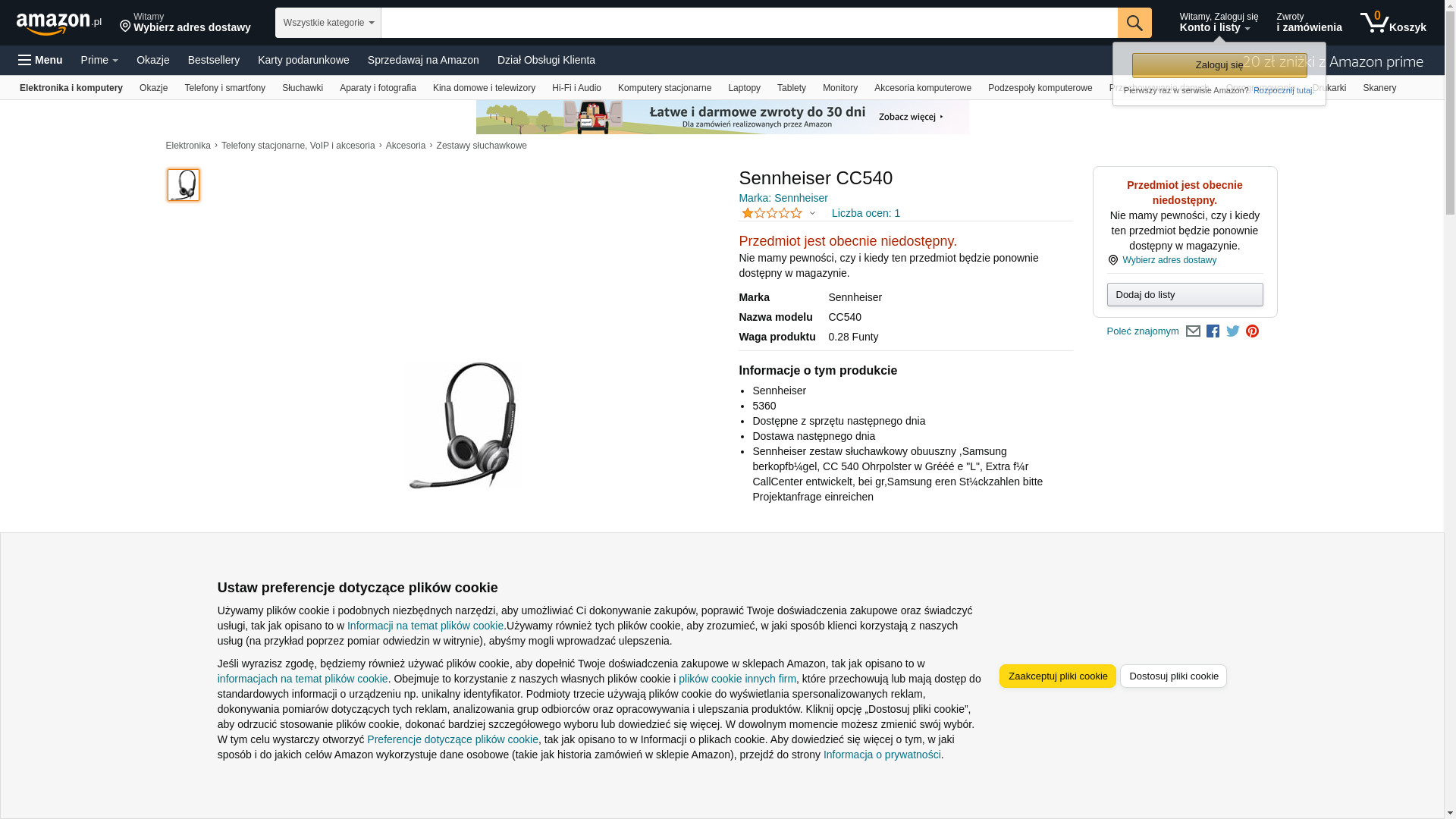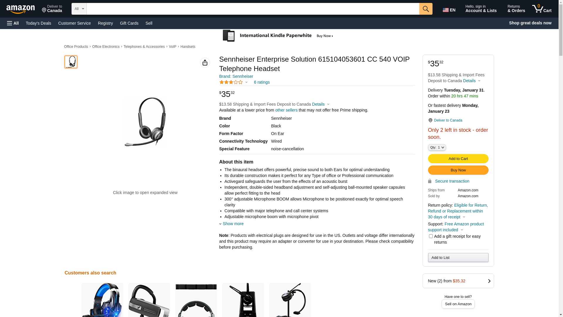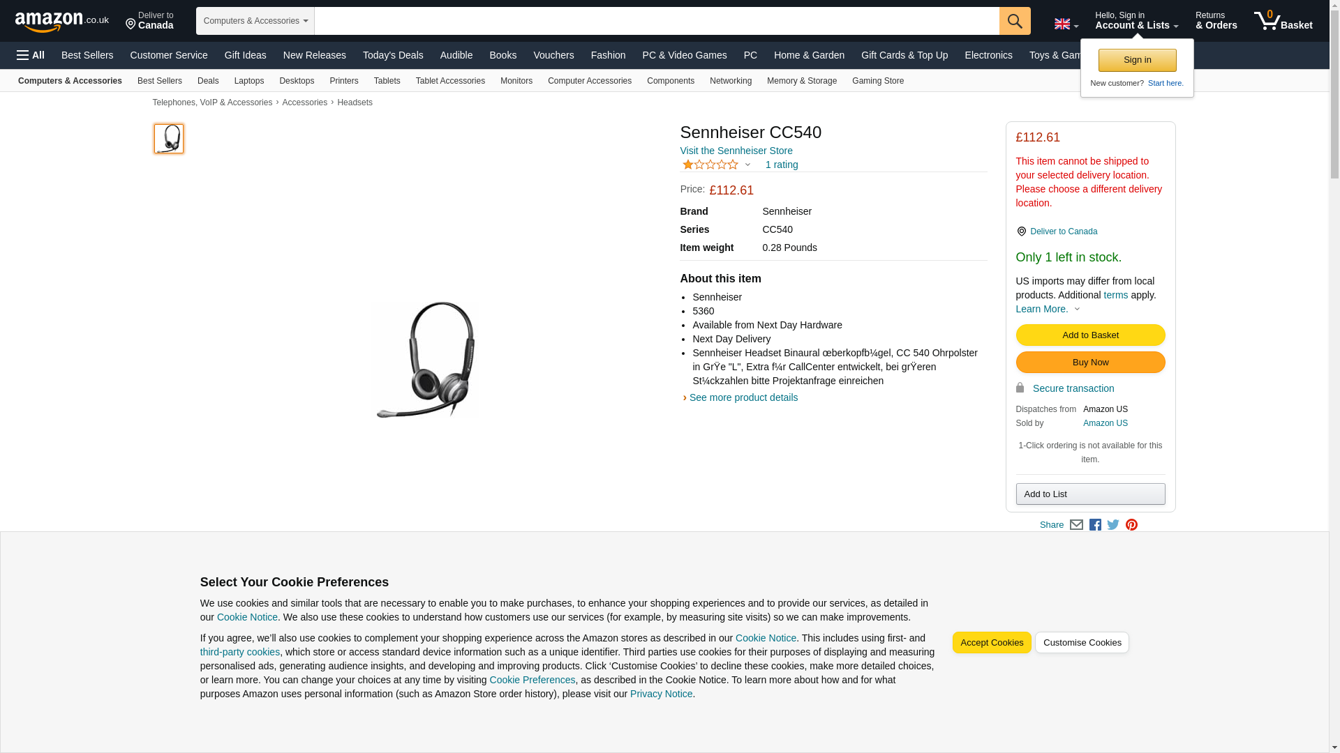| Feature | Sennheiser 005360 CC 540 Stereo Headset - Stereo - Wired - 300 Ohm - 300 Hz - 3.40 kHz - Over-the-head - Binaural - Semi-open - 3.28 ft Cable |
