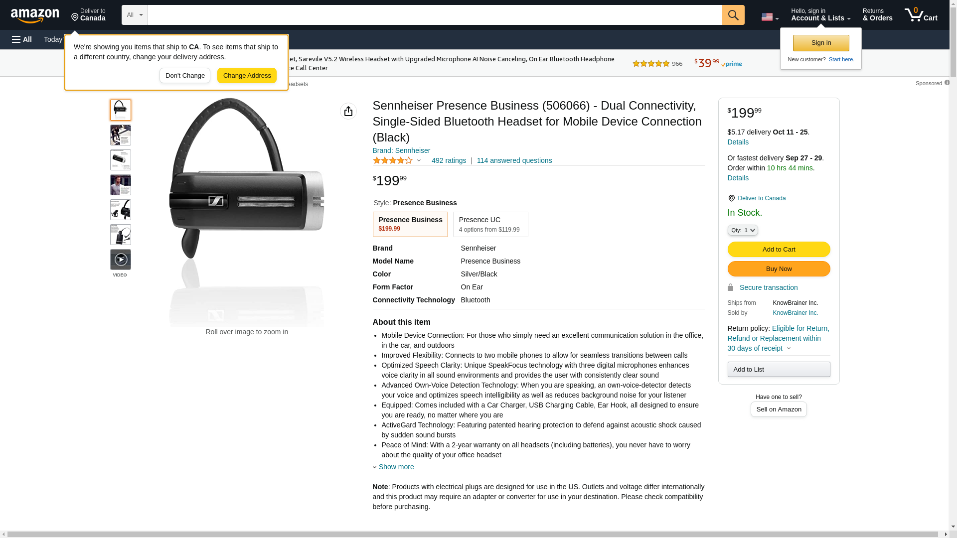 Sennheiser Presence UC ML (504575) - Dual Connectivity, Single-Sided Bluetooth Headset for Mobile Device & Softphone/PC Connection, with Carrying Case and USB Dongle (Black)