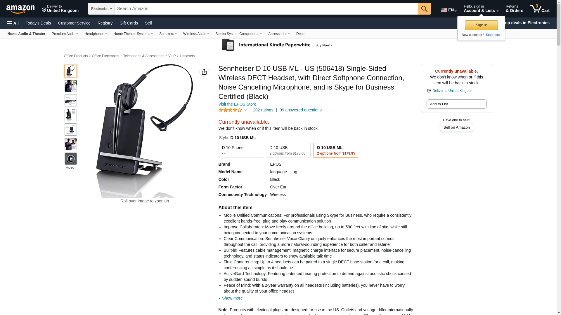 | Feature | Sennheiser D 10 USB ML is a streamlined single-sided wireless DECT headset connecting directly to the softphone/PC to provide uncompromising sound for office professionals using Microsoft\xae Lync\xae. Sennheiser Voice Clarity and noise-cancelling microphone optimize speech intelligibility. |