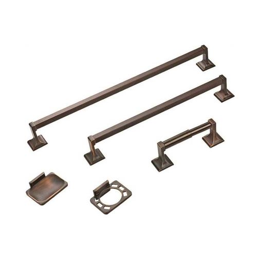 Bath Hardware Set 5 Piece Venetian Bronze. Includes one each: 24 inches towel bar, 18 inches towel bar, toilet tissue holder, toothbrush/tumbler holder and soap dish. Easy and sturdy installation with set screw mounting hardware included. Designed with simplicity in mind, the Boston Harbor Manhattan Collection of Bath Hardware brings a timeless traditional look to almost any space. It highlights smooth features while bringing functionality to your fingertips and organization to your bathroom.Bath Hardware Set 5 Piece Venetian Bronze. Includes one each: 24 inches towel bar, 18 inches towel bar, toilet tissue holder, toothbrush/tumbler holder and soap dish. Easy and sturdy installation with set screw mounting hardware included. Designed with simplicity in mind, the Boston Harbor Manhattan Collection of Bath Hardware brings a timeless traditional look to almost any space. It highlights smooth features while bringing functionality to your fingertips and organization to your bathroom.