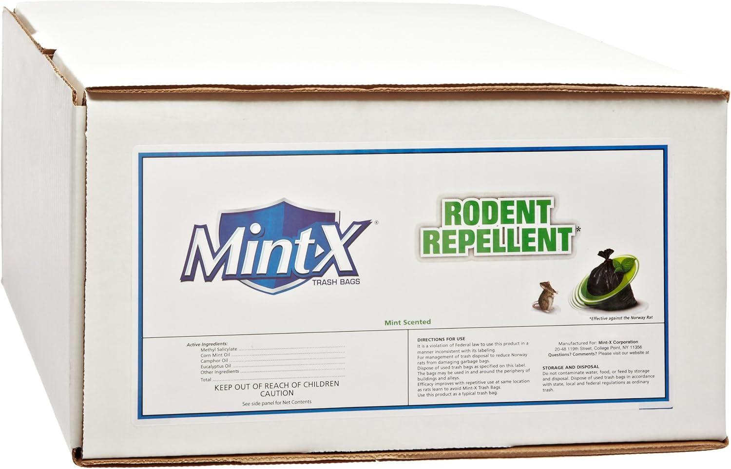 - Keeps Rats, Racoons, and Squirrels Away: Mint-X rodent repellent flat seal trash bags are designed for your home and outdoor needs so whether it's a high-rise apartment building, a sports arena or your back yard, these bags will keep pesky rodents at bay