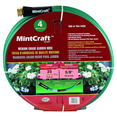 Shop and save on the Mintcraft BL5820025HM Medium Duty Garden Hose, 5/8 in ID 25 ft L, PVC Outer Jacket, Brass Coupling, Green at our online store - you will love our selection.