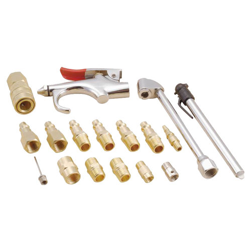 - With 4 piece 1/4 Inch male brass plugs; 1 piece dual tire chuck; 1 piece pencil tire gauge; 1 piece brass blow gun