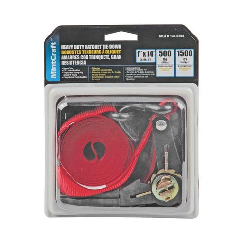 Mintcraft FH64057 Ratchet Tie Down, 500 lb, 14 ft L x 1 in W, Polyester.