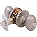 "Mintcraft" Egg Entry Knob Lockset Brand:Mintcraft Visual pack 6-Way Adjustable Latch Finish: Satin Nickel includes 2 keys. Radius round corner strike. Keying: K3 For keyed exterior doors. Both knobs locked or unlocked by key outside, Fits doors from 1-3/8" to 1-3/4" thick. Adjustable 2-way (2-3/8" & 2-3/4") radius corner fixed face plate latch.