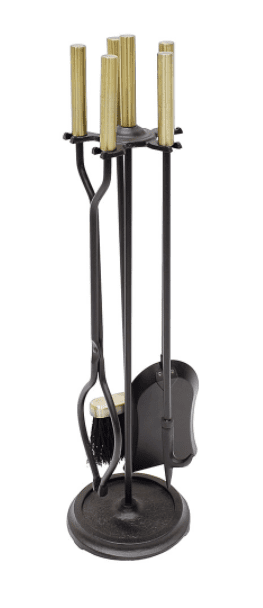 Minuteman International Tool, Antique Brass and Black Neoclassic Fireplace Set