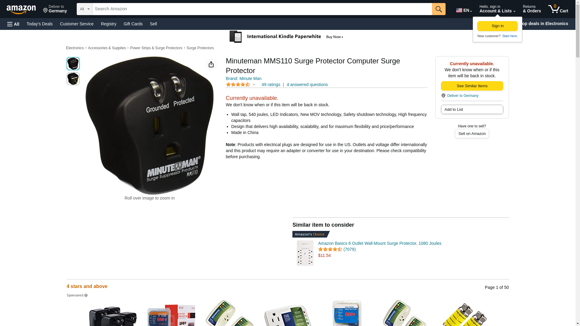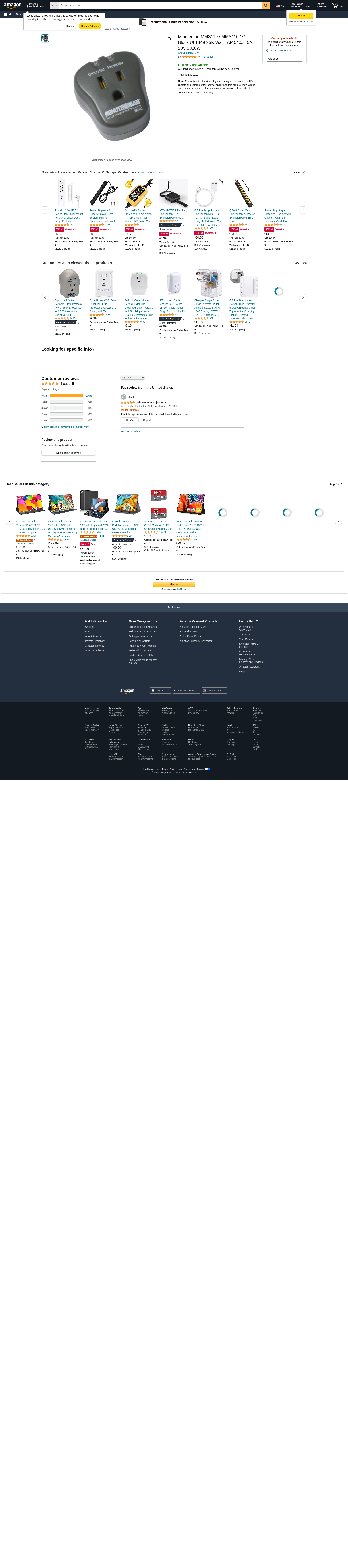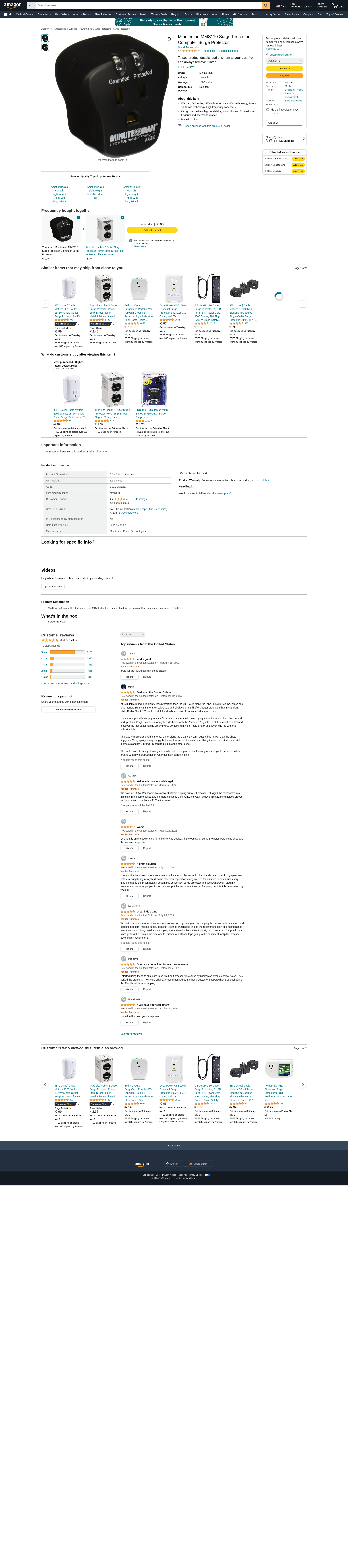 Minuteman MMS110 Surge Protector Computer Surge Protector