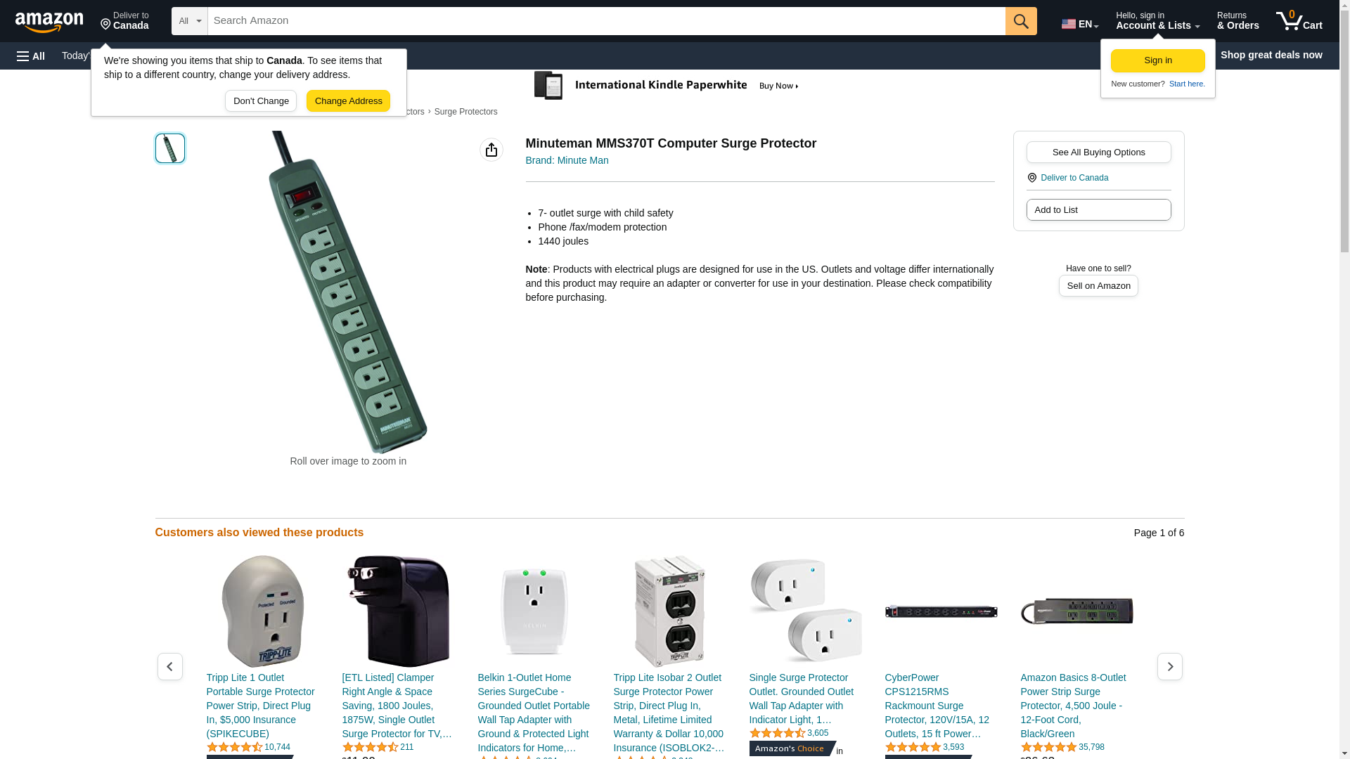 Minuteman Para Sys MMS370T Minuteman MMS Series Surge Protector with Child Safety Covers and Phone Protection, 7 Fixed Grounded Outlets, 15A, 120V, 1800 Watts, 1440 Joules