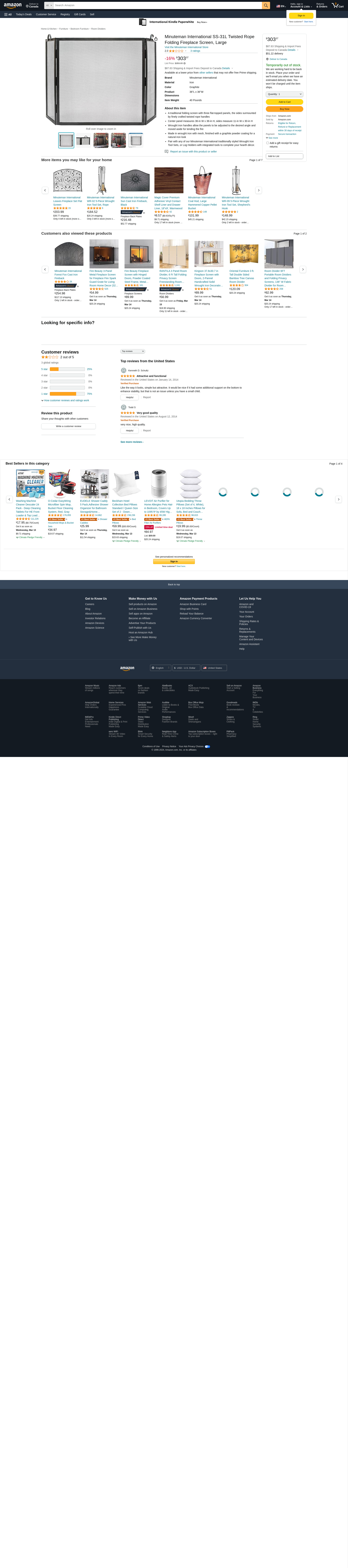 Minuteman International SS-31L Twisted Rope Folding Fireplace Screen, Large