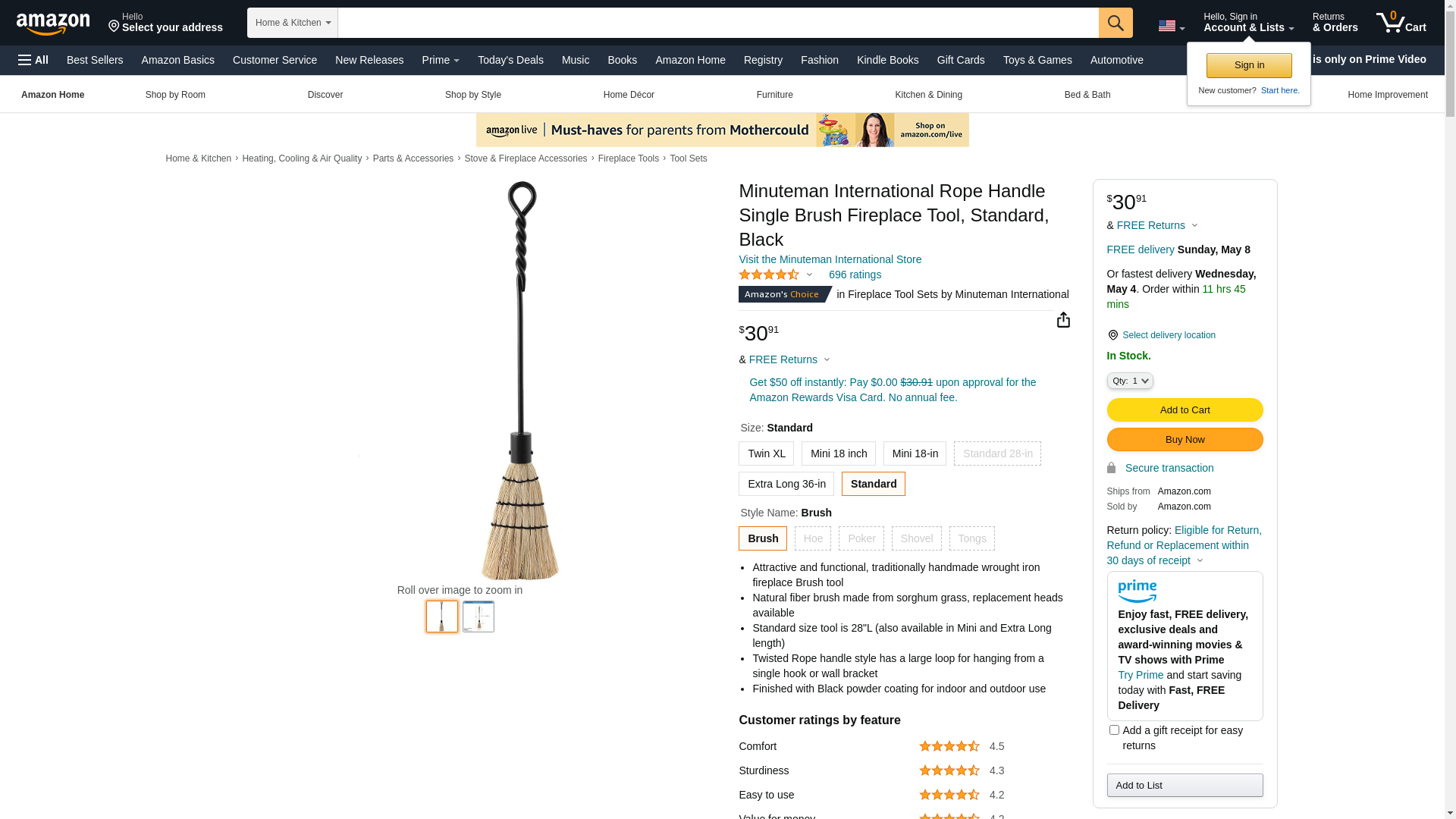 Minuteman International Rope Handle Single Brush Fireplace Tool, Standard, Black: Maxedbuy.com