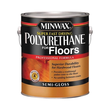 Highlights: Interior Oil Based Semi-Gloss Finish Specifically formulated for hardwood floors Long lasting protection, levels to a smooth, even sheen Easy to apply, super fast drying No sanding required between coats Covers 600 - 700 sq. ft. per gallon Gallon