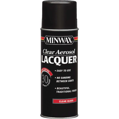 Minwax Clear Gloss Lacquer (152000000). More details: 11.5 oz. aerosol Protective finish for wood and metal, fine fur...
