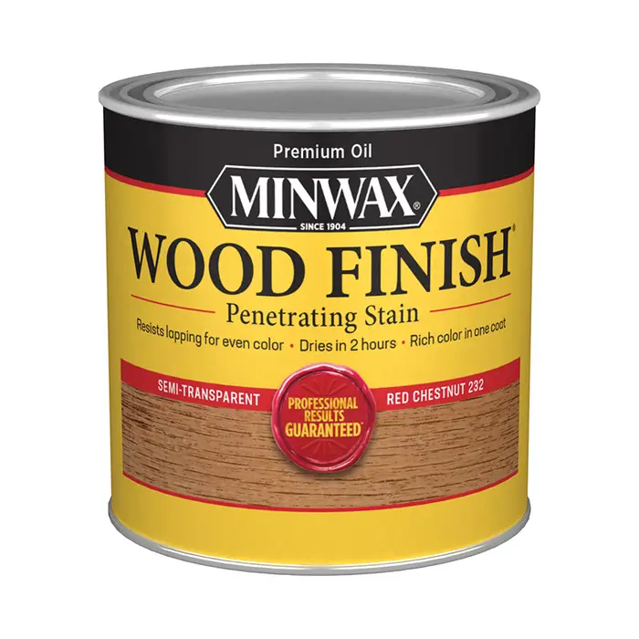 Minwax 1/2pt Wood Finish in Chestnut (22320). More details: Container Size: 1/2 pt. Stain Color: Red Chestnut Transpa...