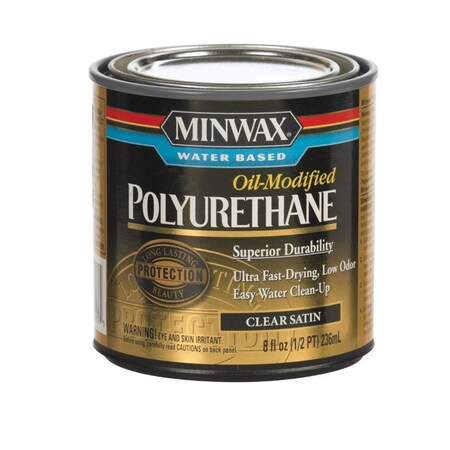 1/2 PT, Satin, VOC, Water Based, Oil Modified Polyurethane, Ultra Fast Drying, Low Odor, Easy Water Clean Up, Maximum VOC 275 G/L.