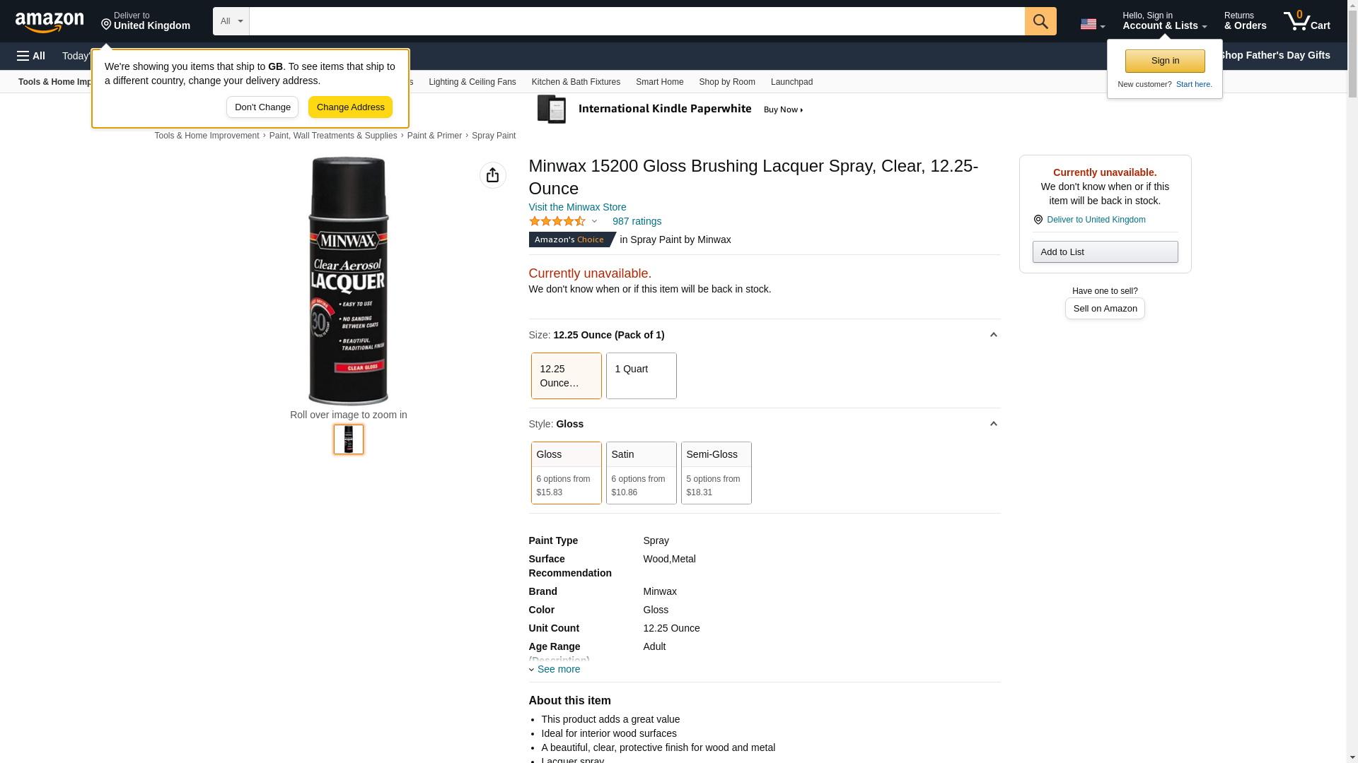 Minwax 15200 Gloss Brushing Lacquer Spray, Clear, 12.25-Ounce