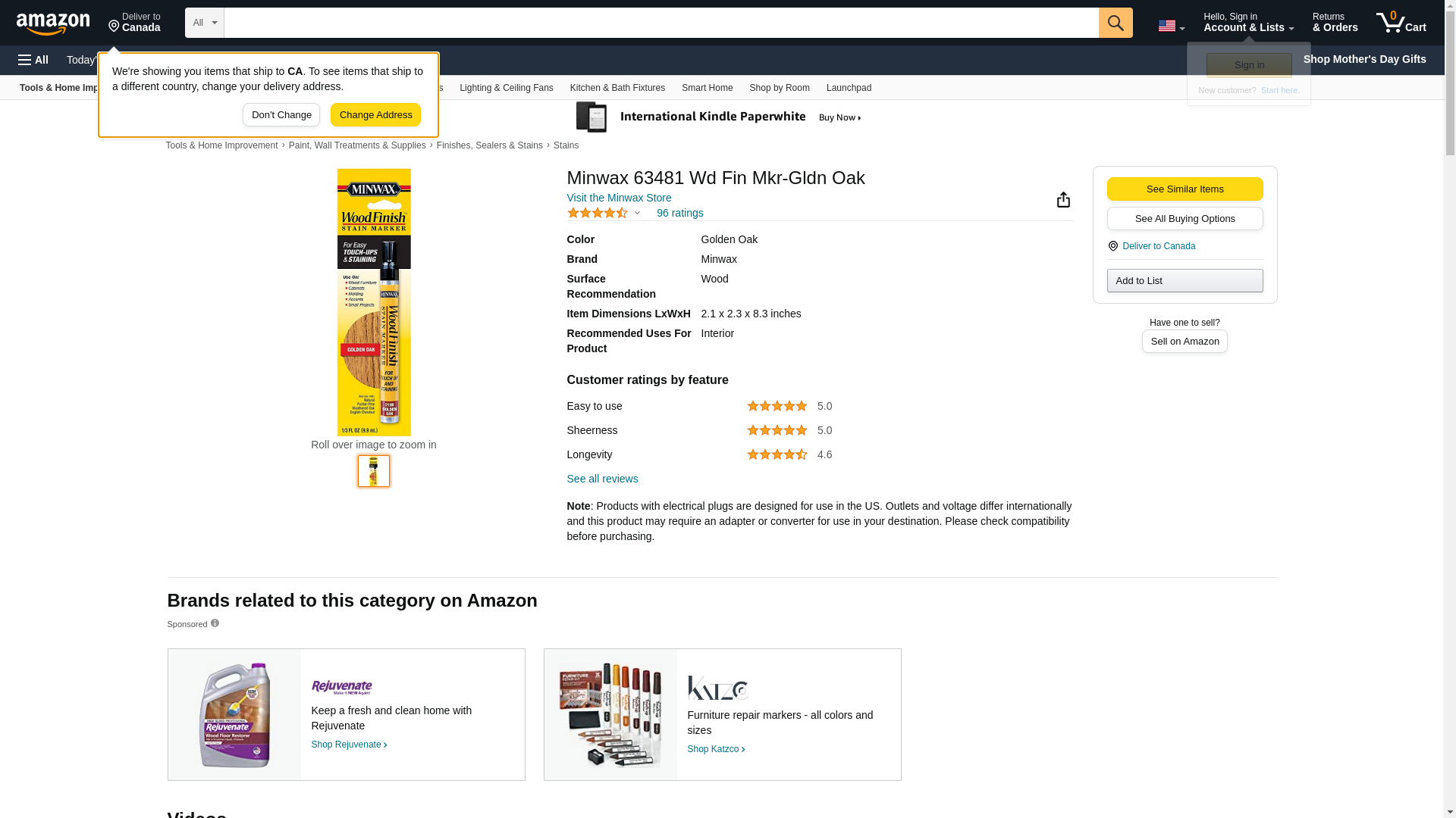 Traditional Minwax stain in a convenient marker applicator. Ideal for touch ups on furniture, kitchen cabinets, molding or other interior wood surfaces. Also good for small projects or projects requiring precision or staining in hard to reach areas. 1/3 fl. oz. Exact matches to the 8 most popular Minwax stain colors. Carded. Color: Golden Oak Application: Marker WARNING: This product contains chemicals known to the State of California to cause cancer and birth defects or other reproductive harm. -