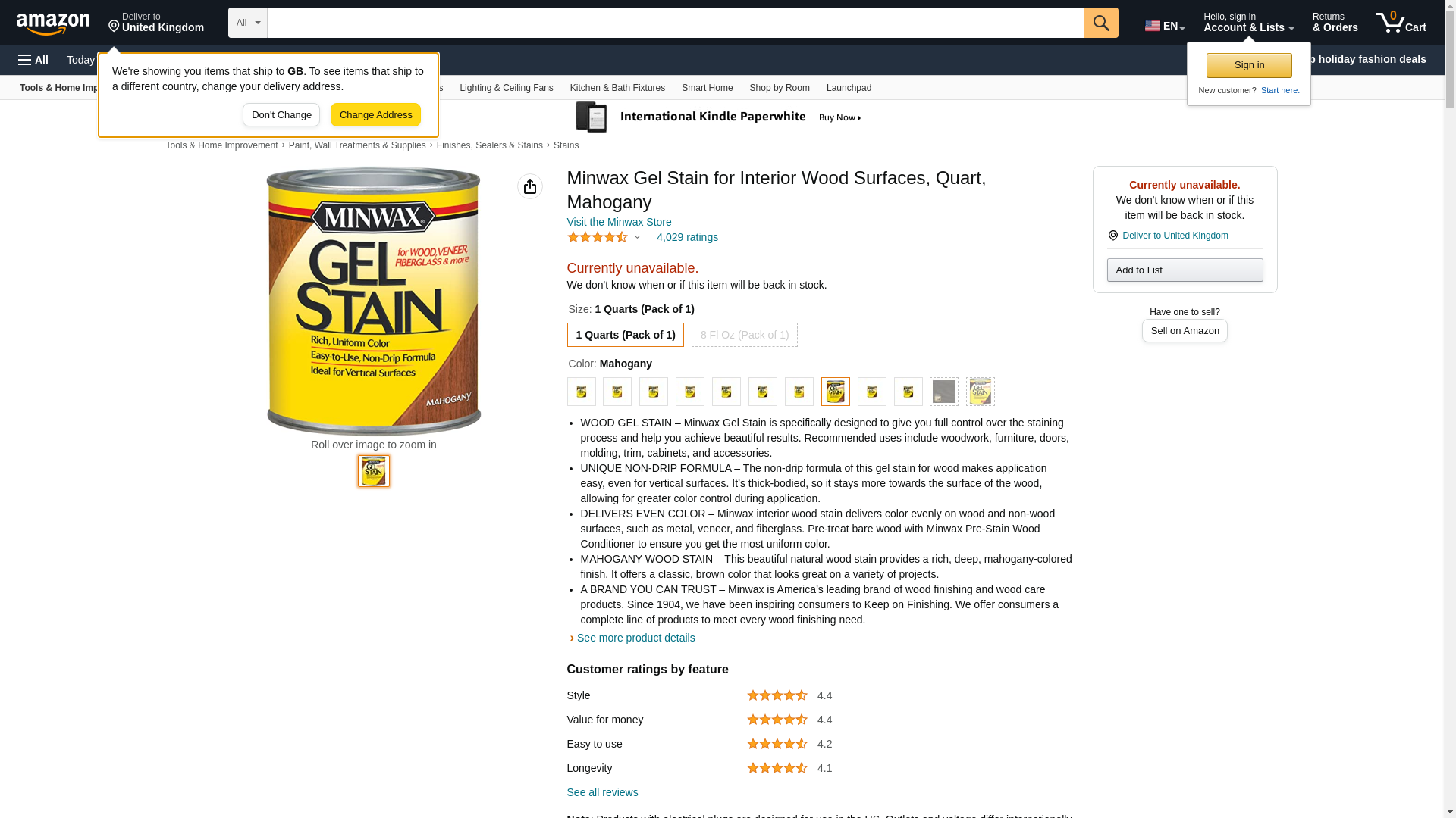 Minwax Gel Stain for Interior Wood Surfaces, Quart, Mahogany