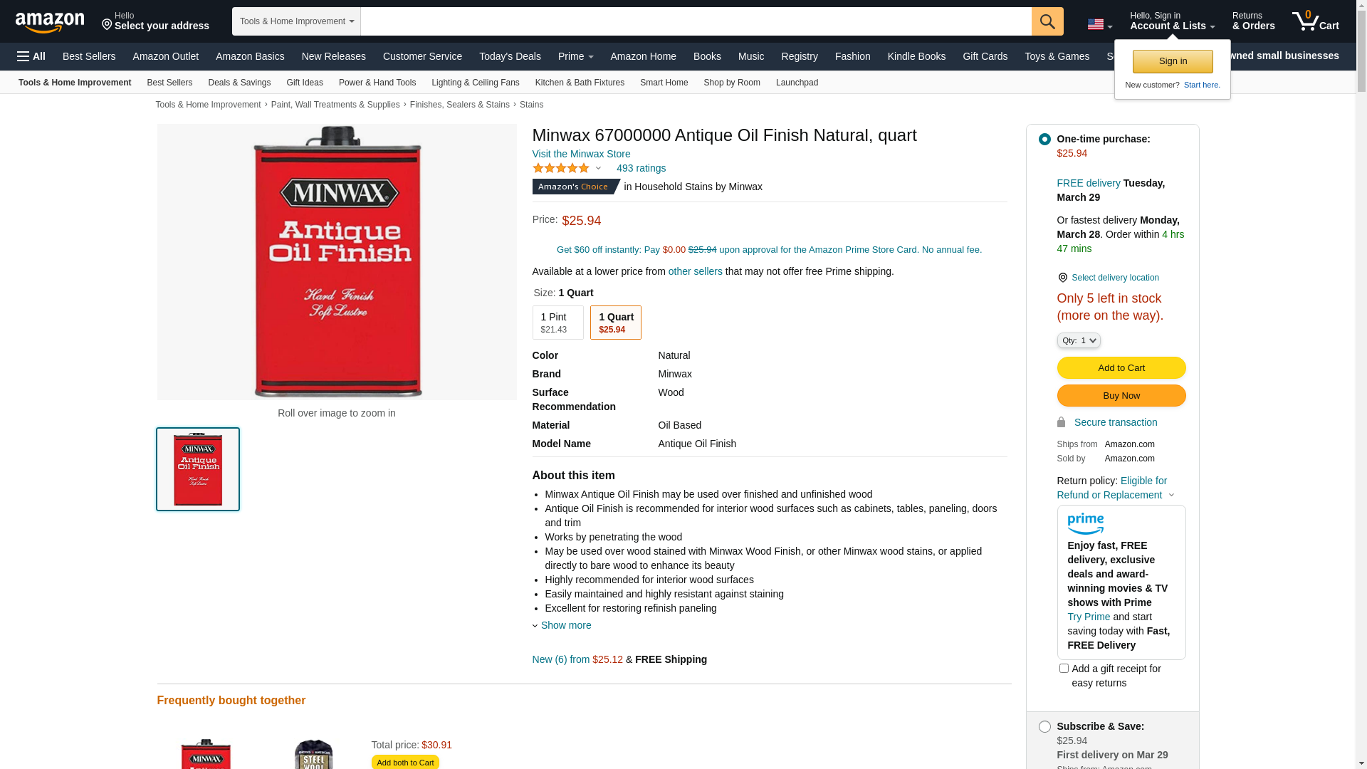 Minwax Antique Oil Finish 67000000, Quart, Natural