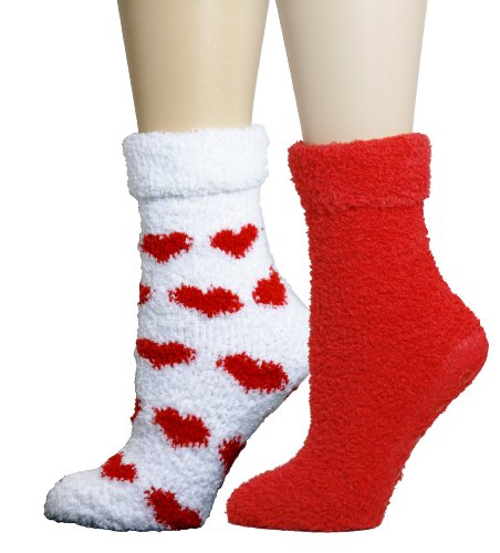 Minx NY VHT10287-RED Lavender Capsule Infused Fluffy Chenille Socks - 2 Pair Pack - Poppy Red