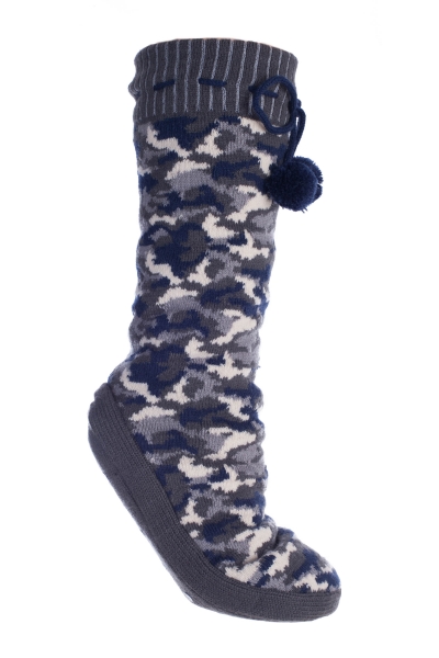 Minx NY VHT10358.NCM-AST Altos Slipper Socks With Pom Poms - Navy Camo