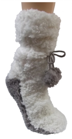 Minx NY VHT10361.CRM-LRG Ladies Super Fluffy Socks with Iphone Pocket - Winter White - Large