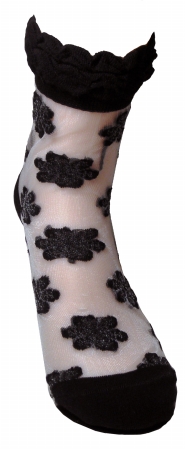 Minx NY VHT10380.BLK.BFL-L Sheer Crew Sock with Stiched Pattern and Trim